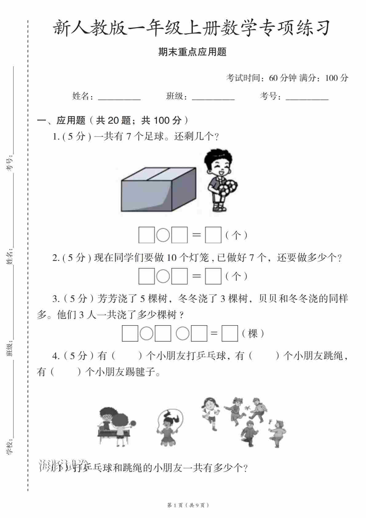 一年级(上)数学 期末应用题总复习30天冲刺训练