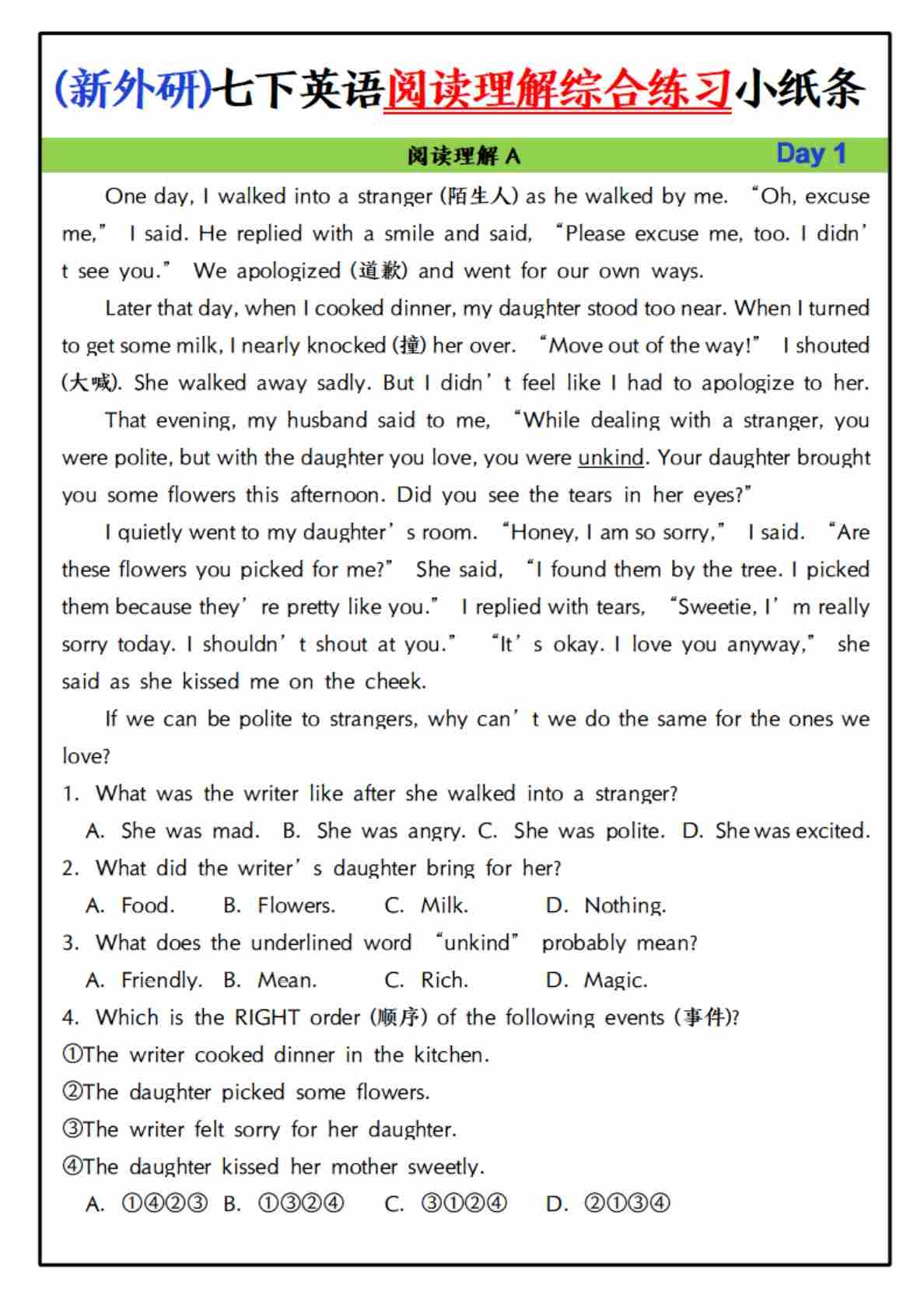 外研版(新七下)单词 词性转换 短语 重点句子合集(默写中文)