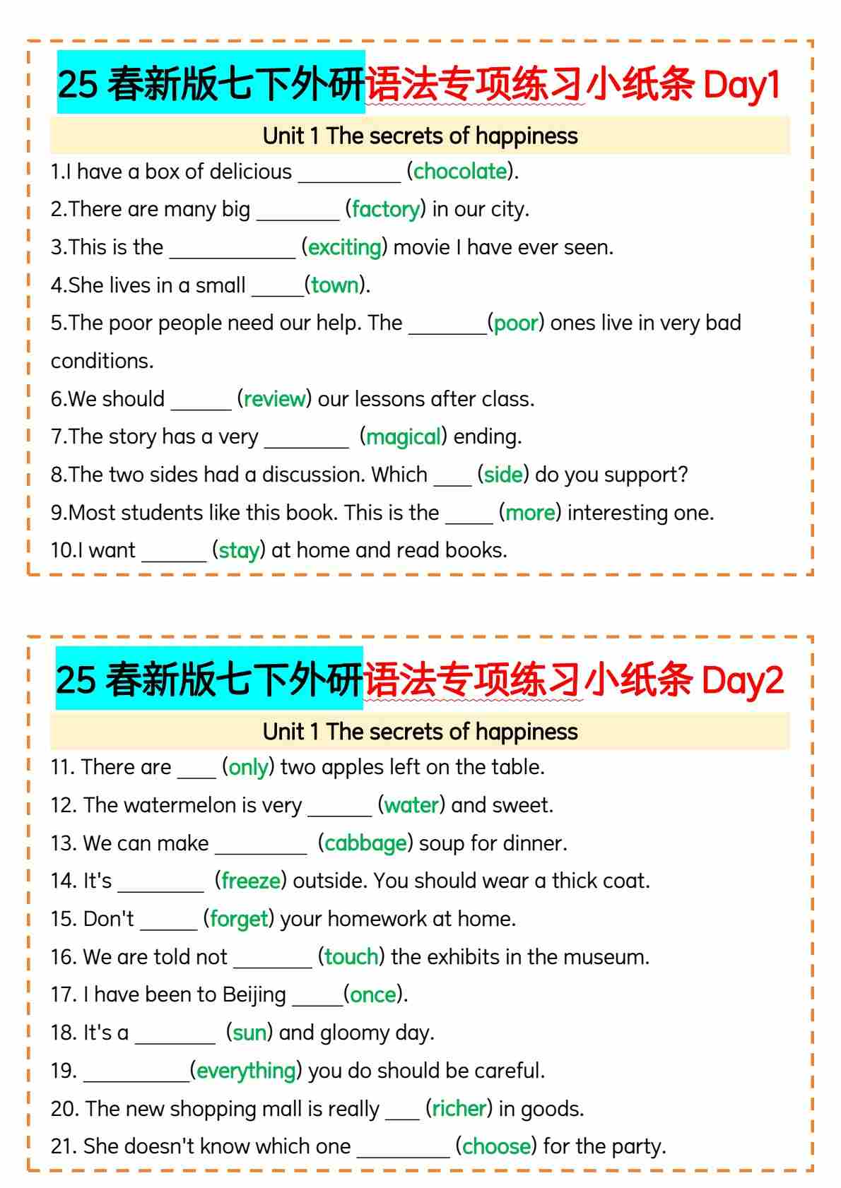 25春新版七下外研语法专项练习小纸条(1) 2025-1-8 19329 19