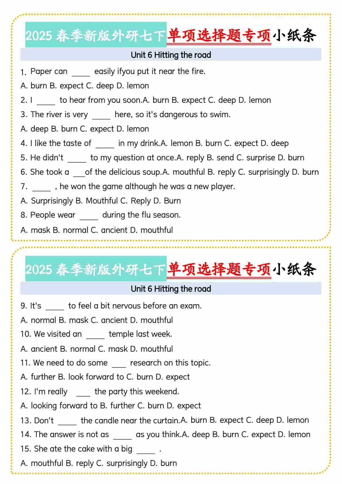1@2025春季新版外研七下单项选择题小纸条