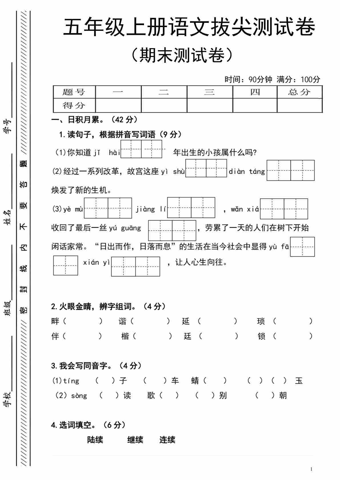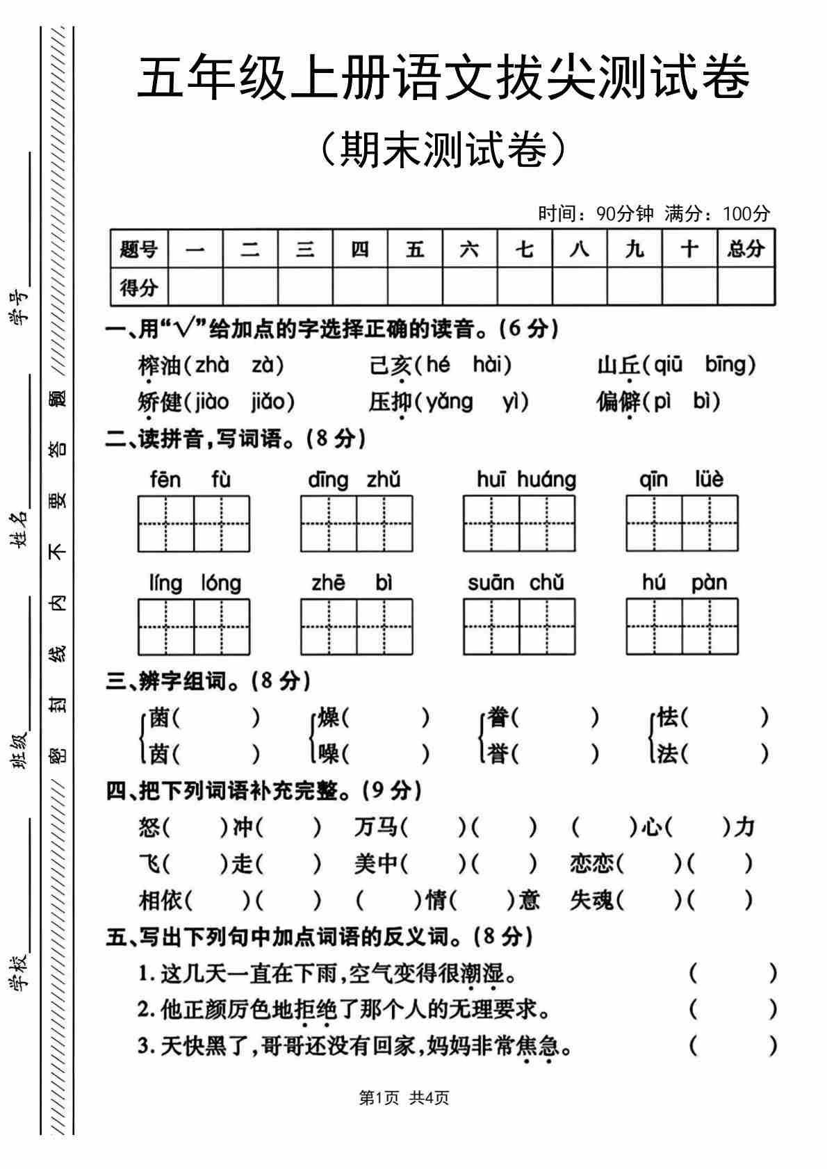 五年级(上)语文 期末拔尖测试卷4
