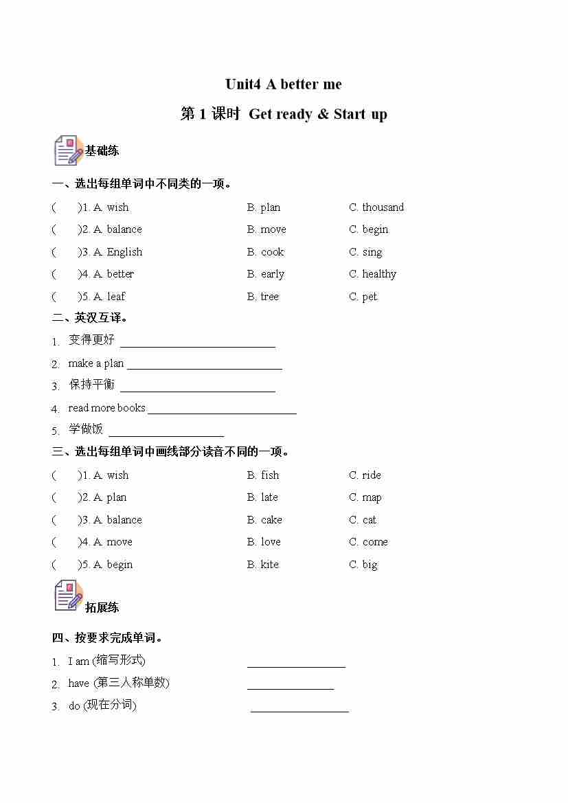 五上外研三起Unit 2 第1课时 Get ready & Start up (分层作业)英语外研版三起五年级上册(新教材)4