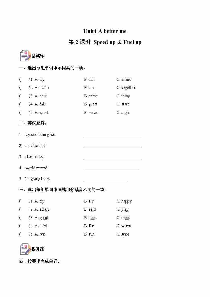 五上外研三起Unit 1 第2课时 Speed up &Fuel up (分层作业)英语外研版三起五年级上册(新教材)2