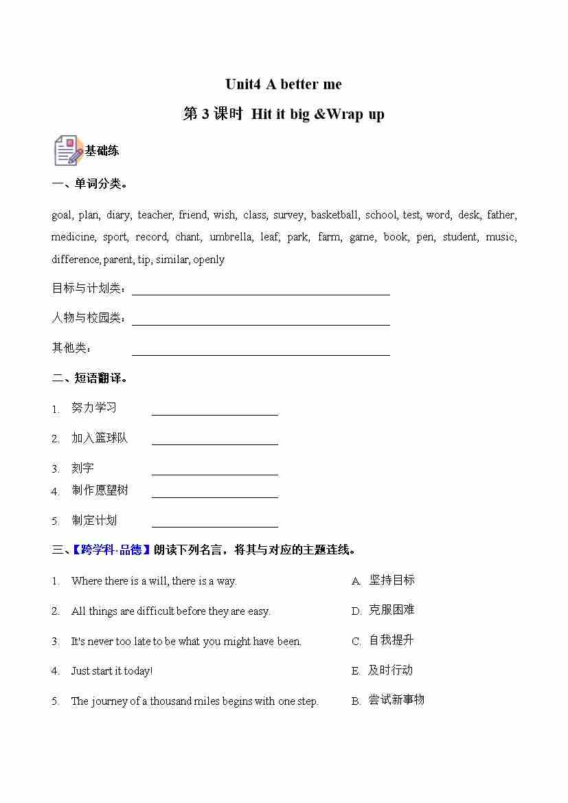 五上外研三起Unit 3 第3课时 Hit it big & Wrap up (分层作业)英语外研版三起五年级上册(新教材)9