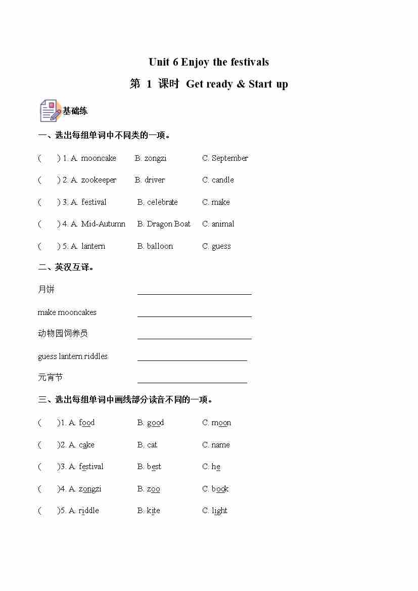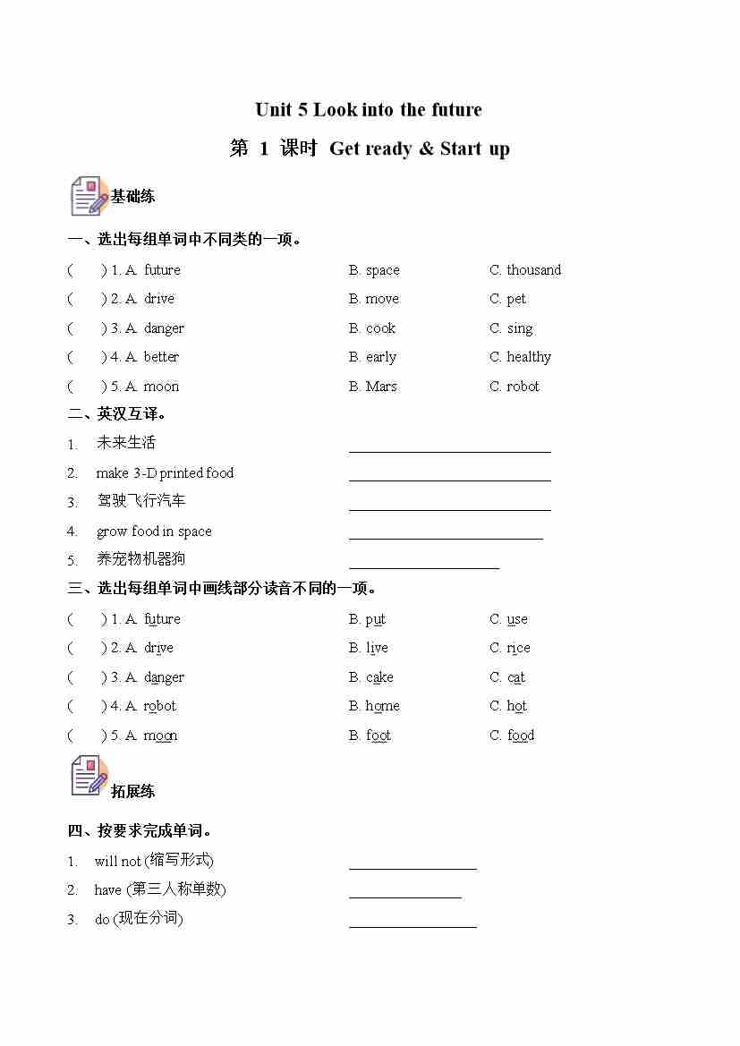 Unit 6 第1课时 Get ready & Start up (分层作业)英语外研版三起五年级上册(新教材)