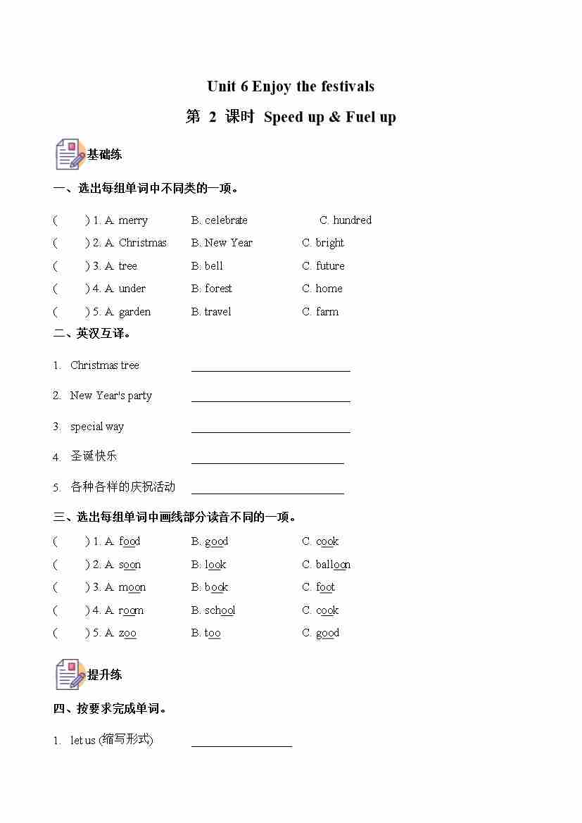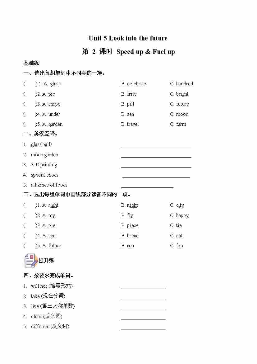 五上外研三起Unit 2 第2课时 Speed up &Fuel up (分层作业)英语外研版三起五年级上册(新教材)5