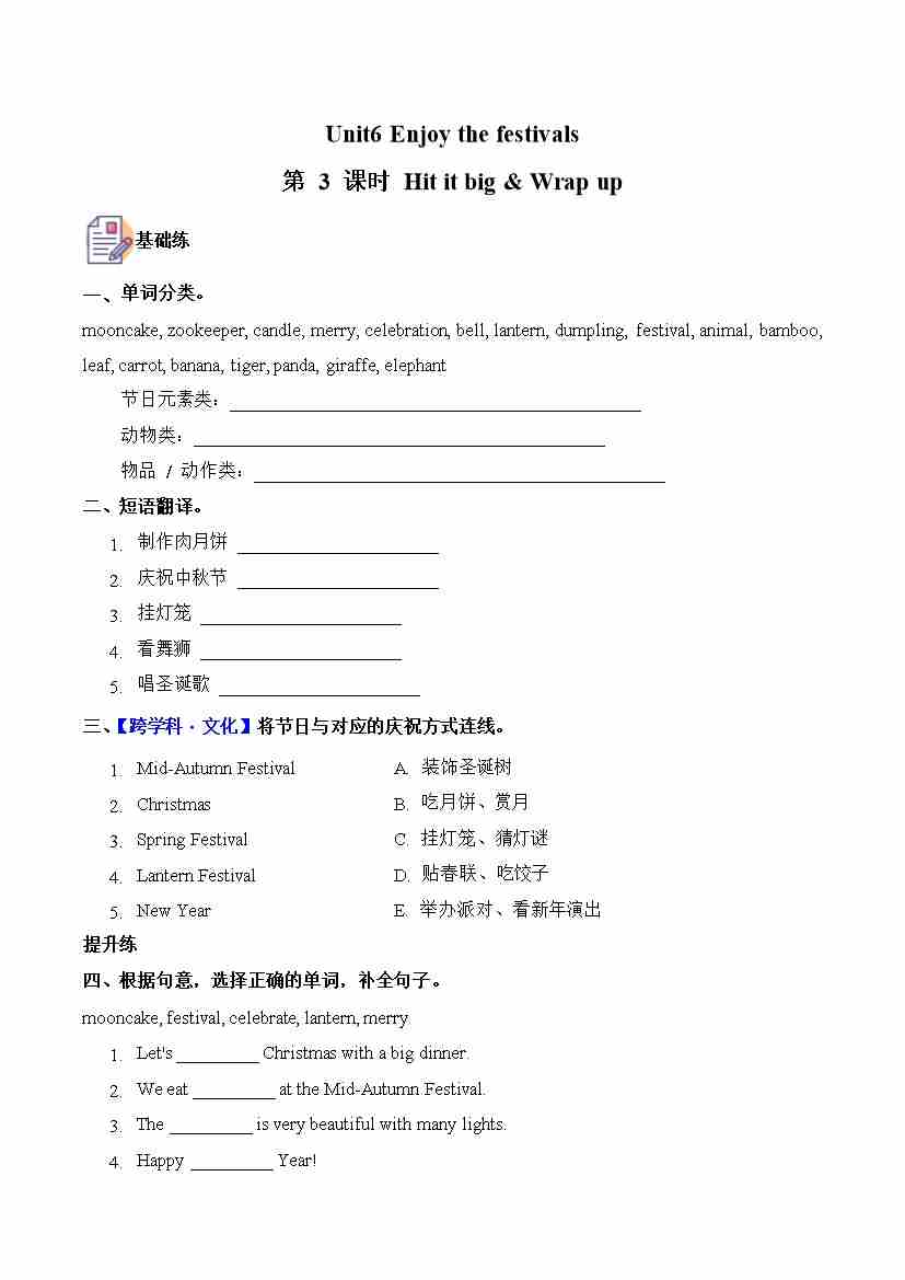 Unit 6 第3课时Hit it big &Wrap up (分层作业)英语外研版三起五年级上册(新教材)