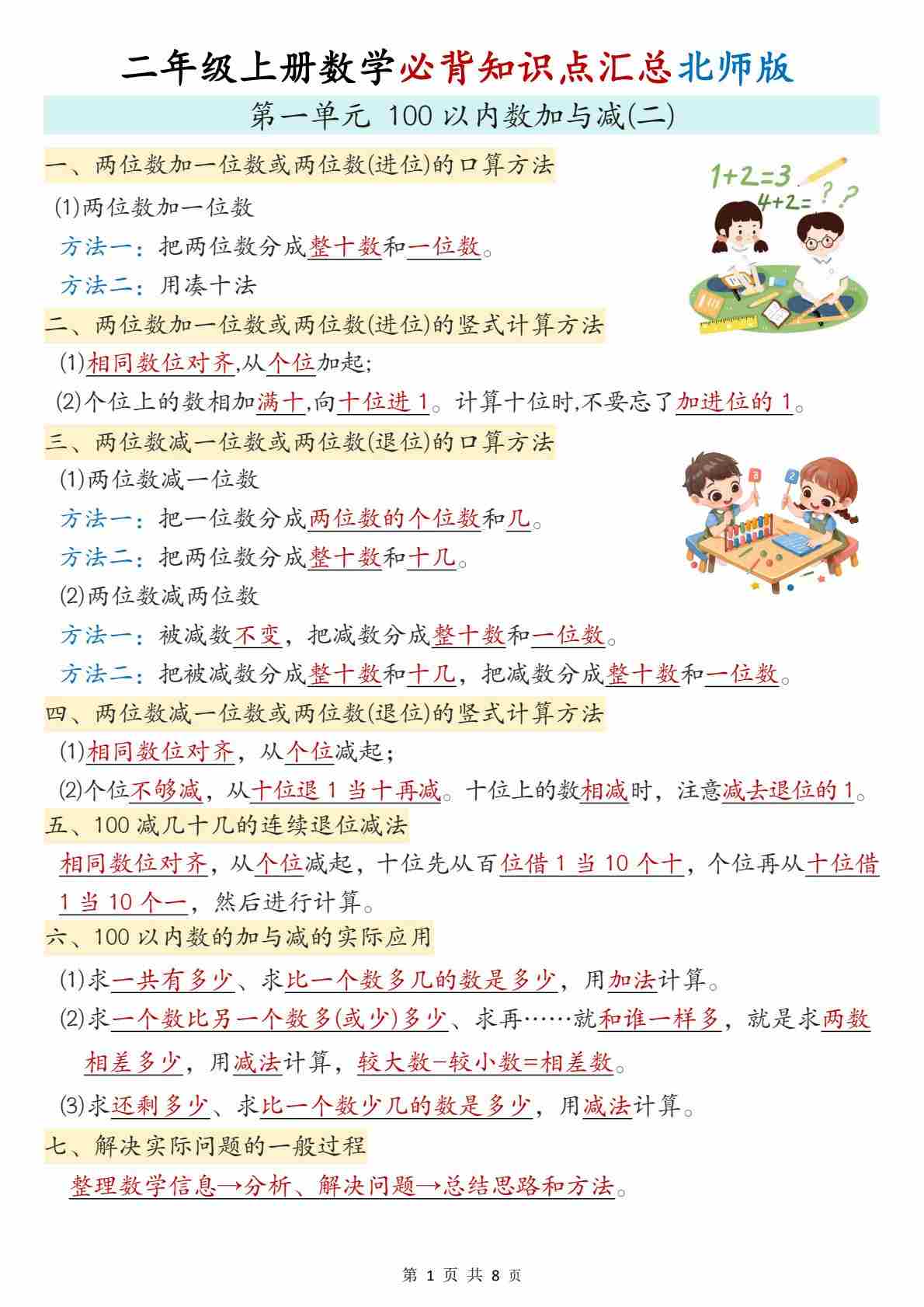 25秋二上北师大版数学【1-8单元知识总结思维导图】