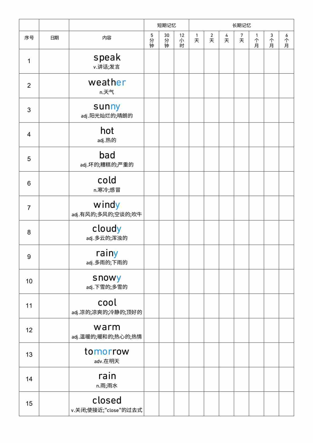 U5 艾宾浩斯记忆表