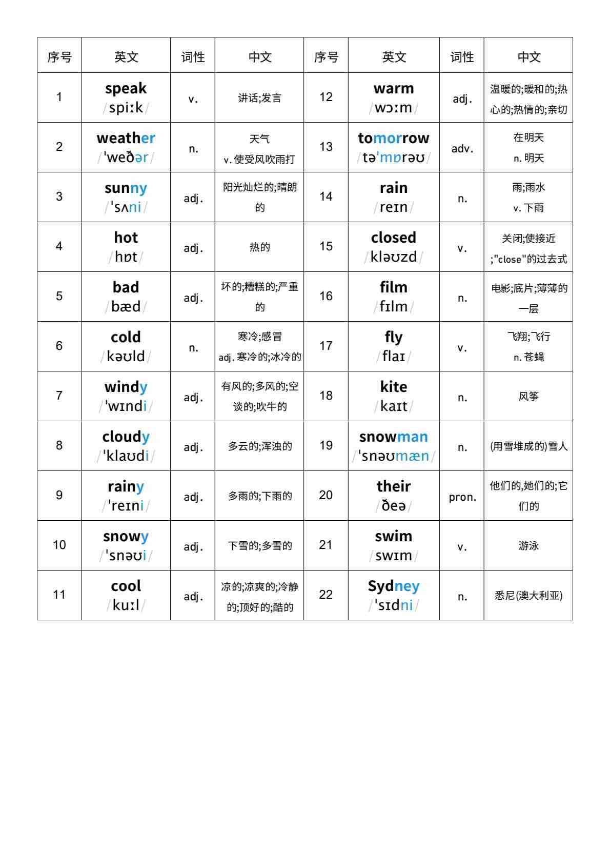 U5 词性单列