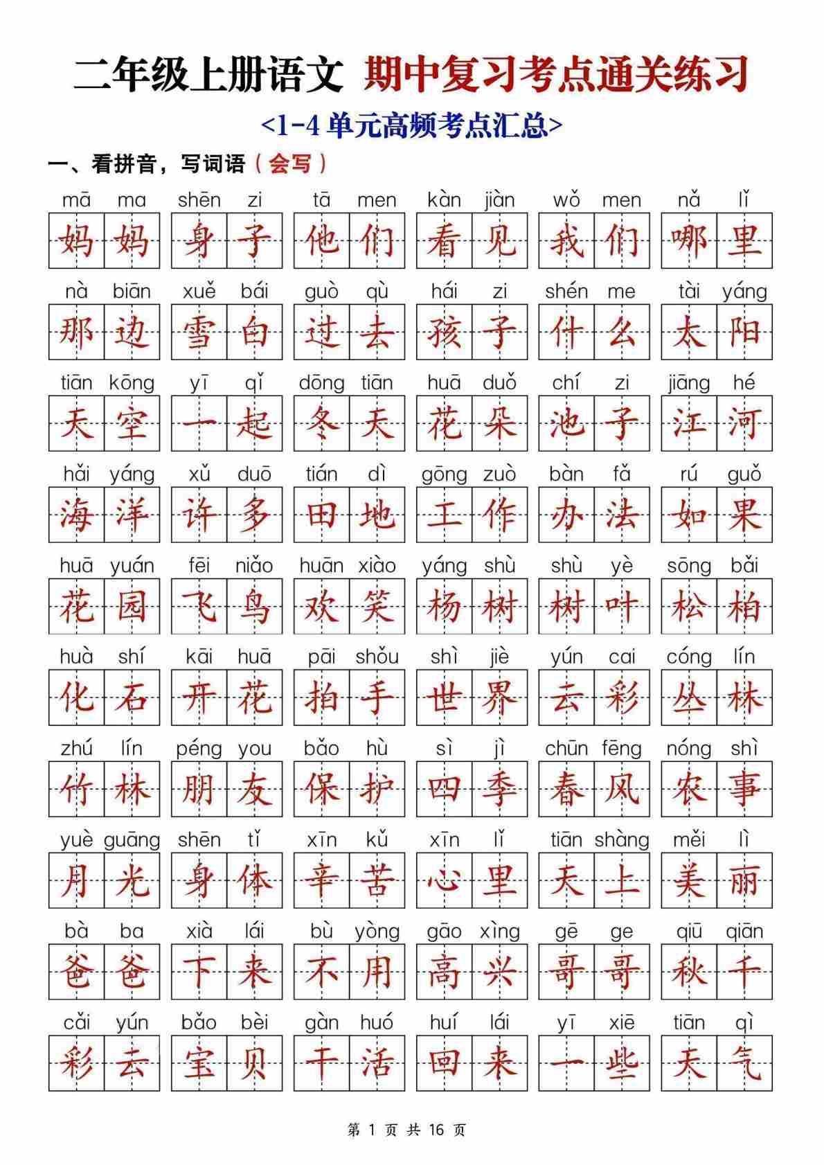 二(上)语文1-4单元【期中复习】每课知识点汇总26页