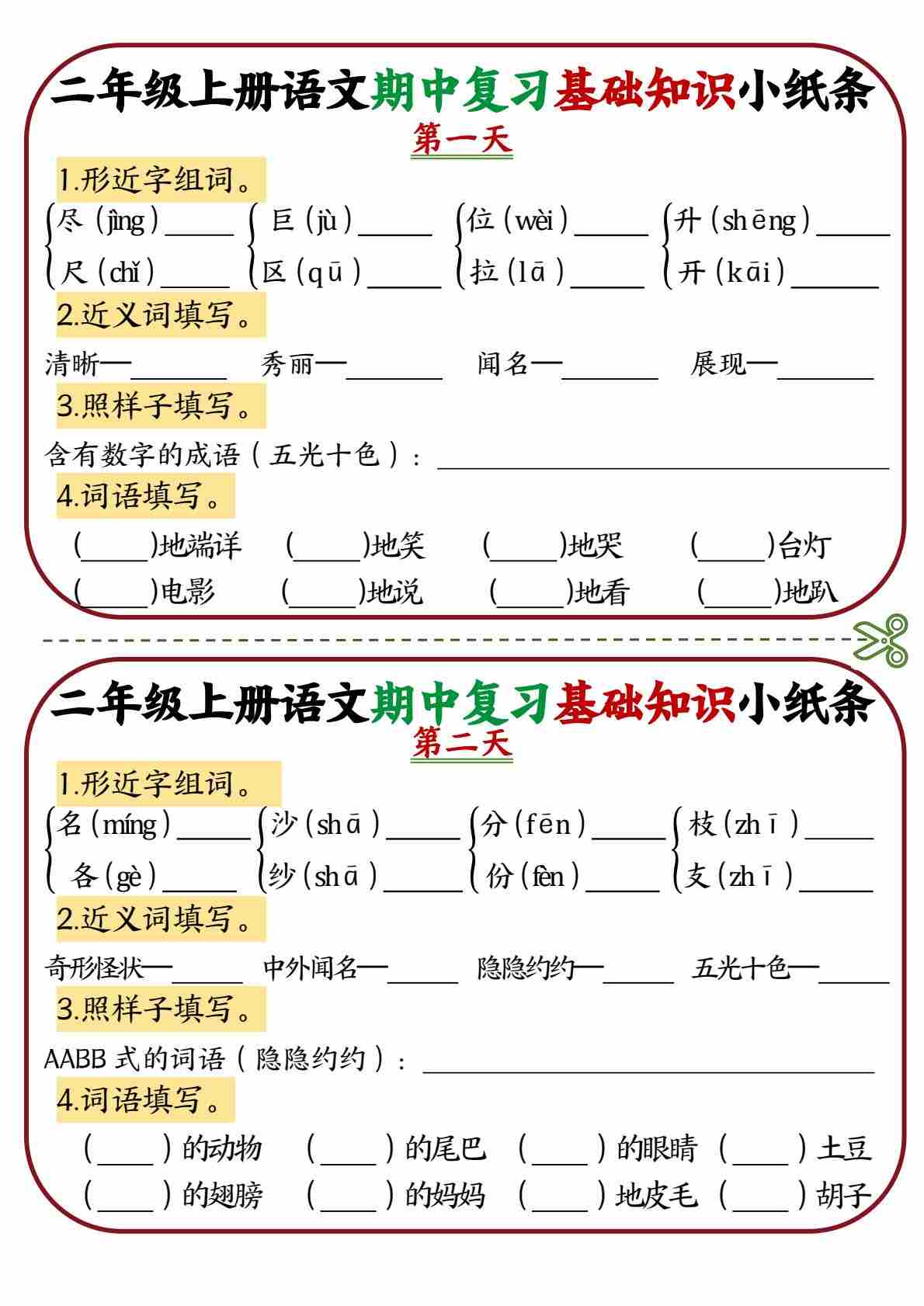 二(上)语文期中复习基础知识小纸条12天6页(1)