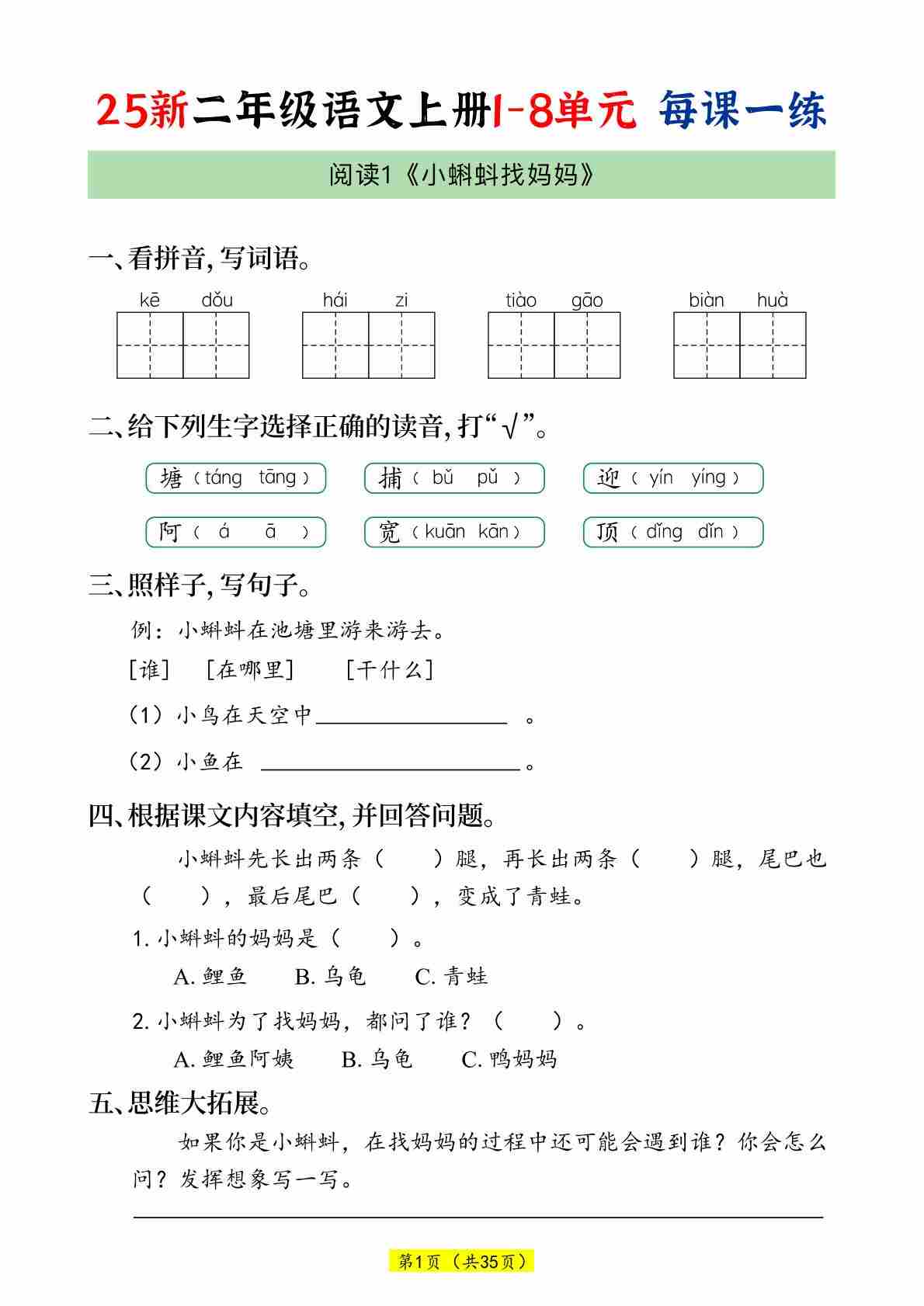二(上)语文25新1-8单元一课一练(35页)