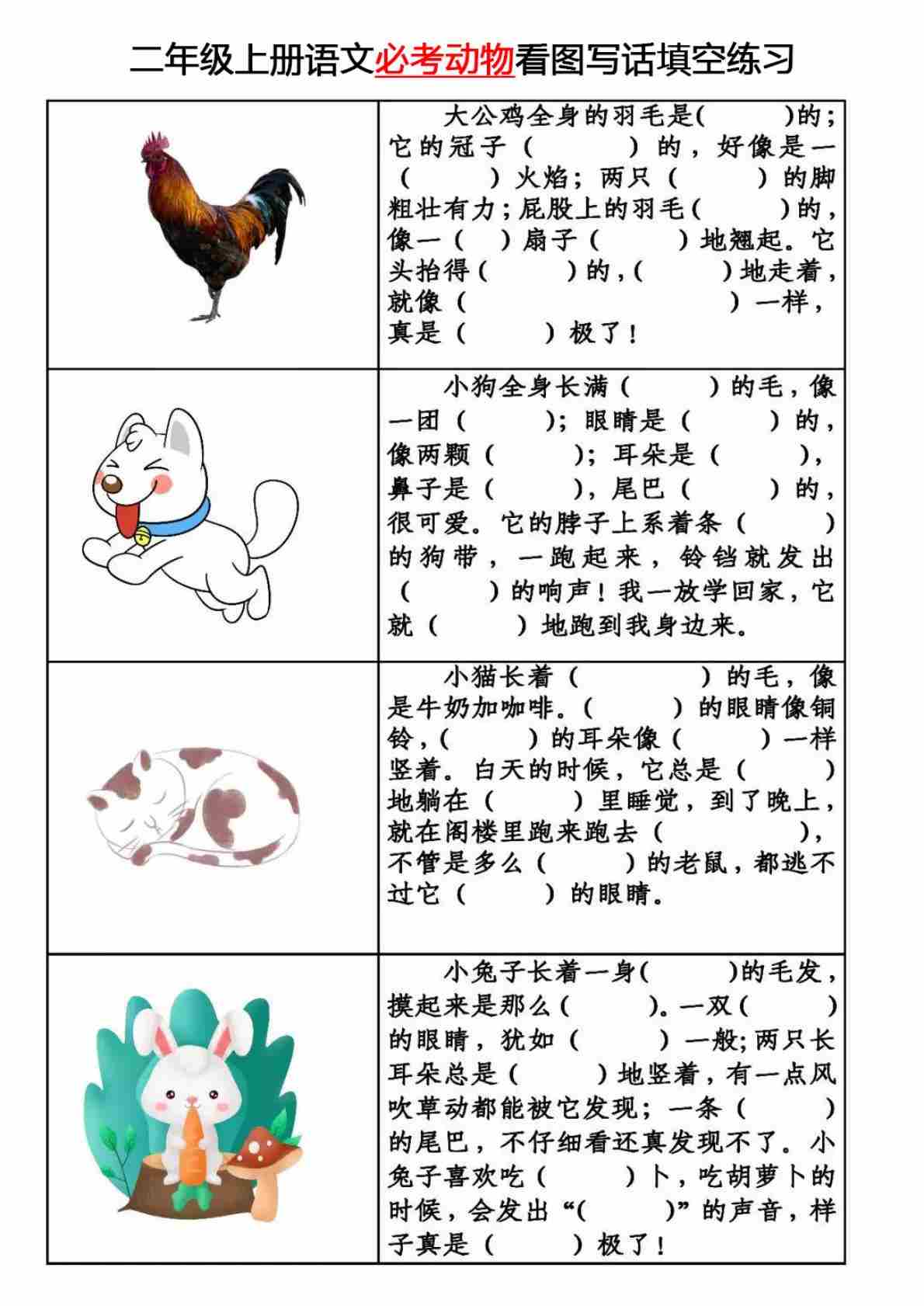 【必考动物-看图写话填空】二上语文