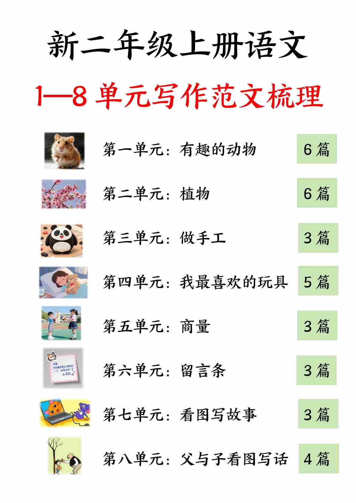 二(上)语文【25新1-8单元看图写话必背范文33篇34页