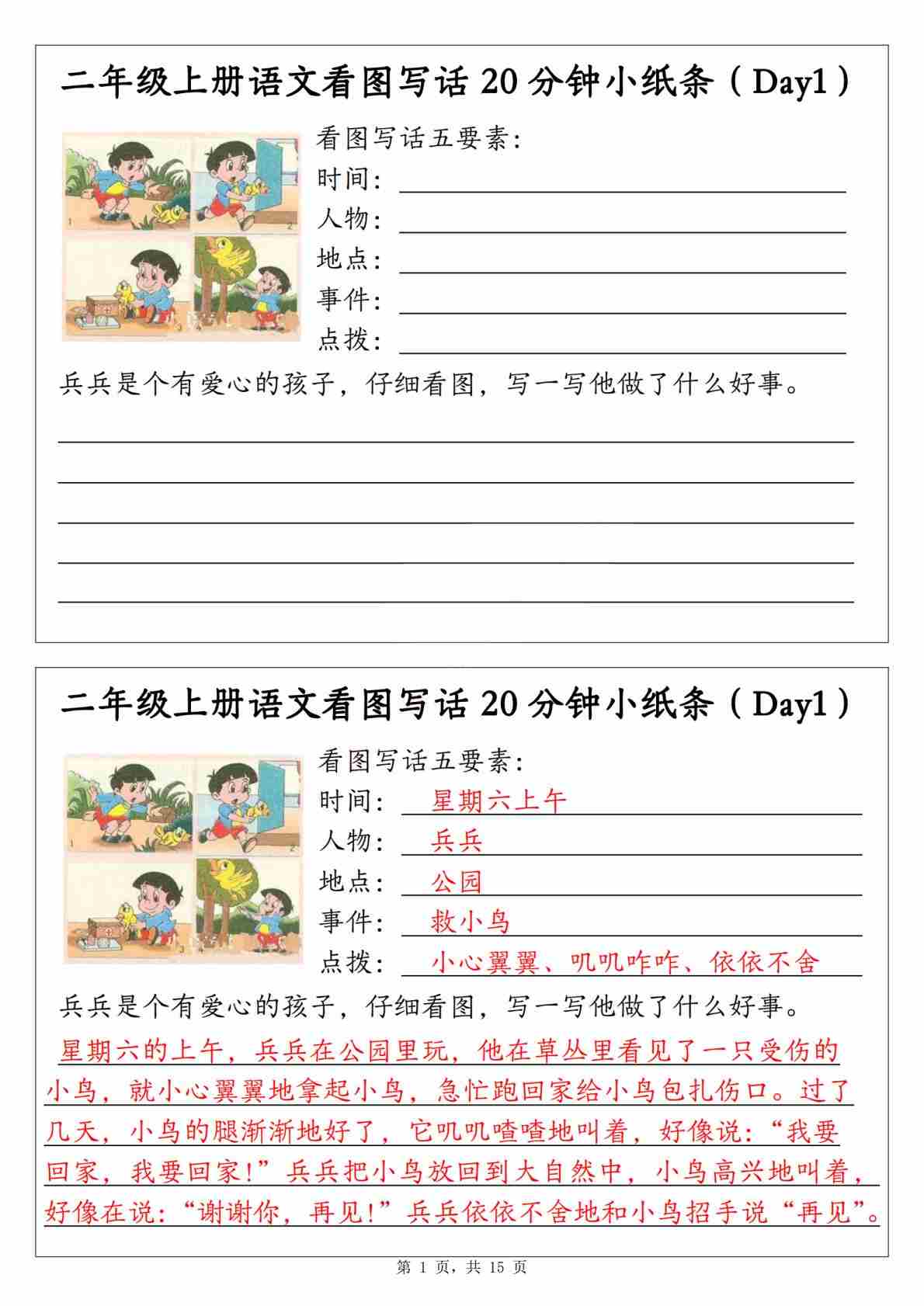 二(上)语文看图写话20分钟小纸条(含范文15天15页)(1)
