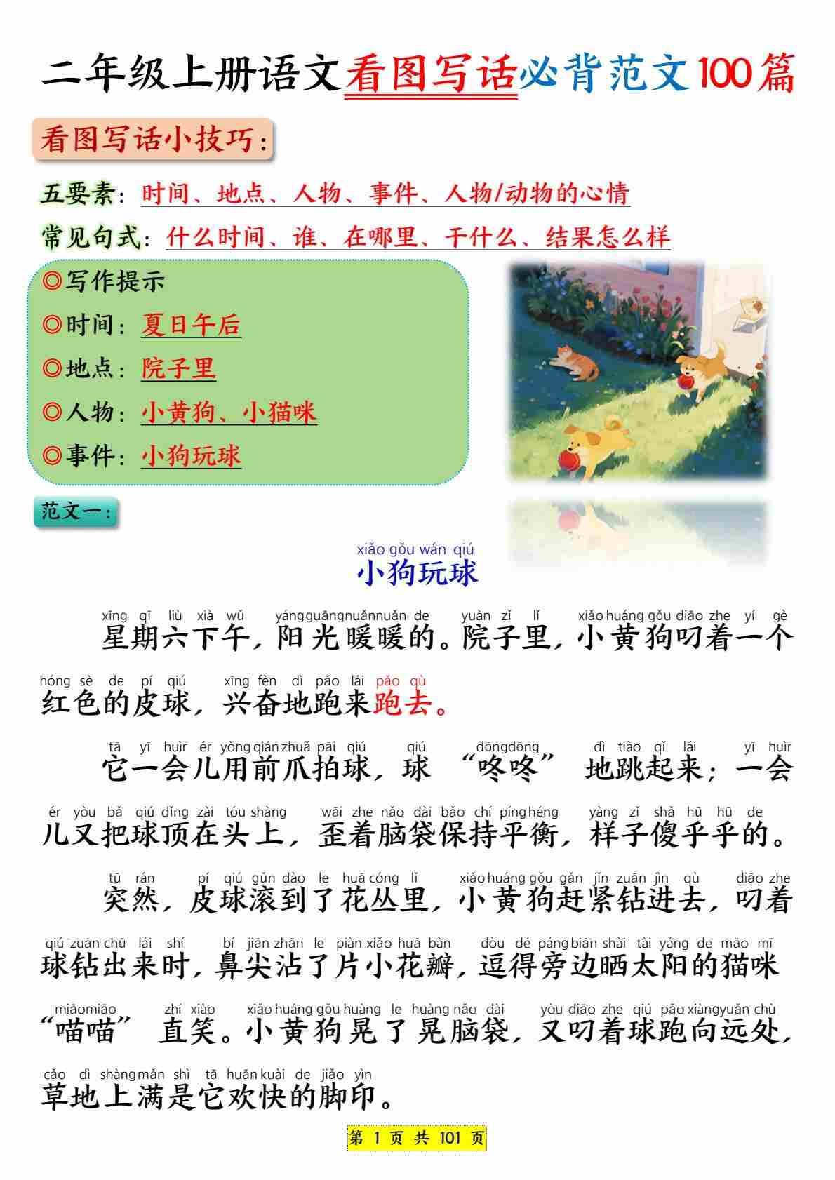 【看图写话训练30篇(含范文)】二上语文