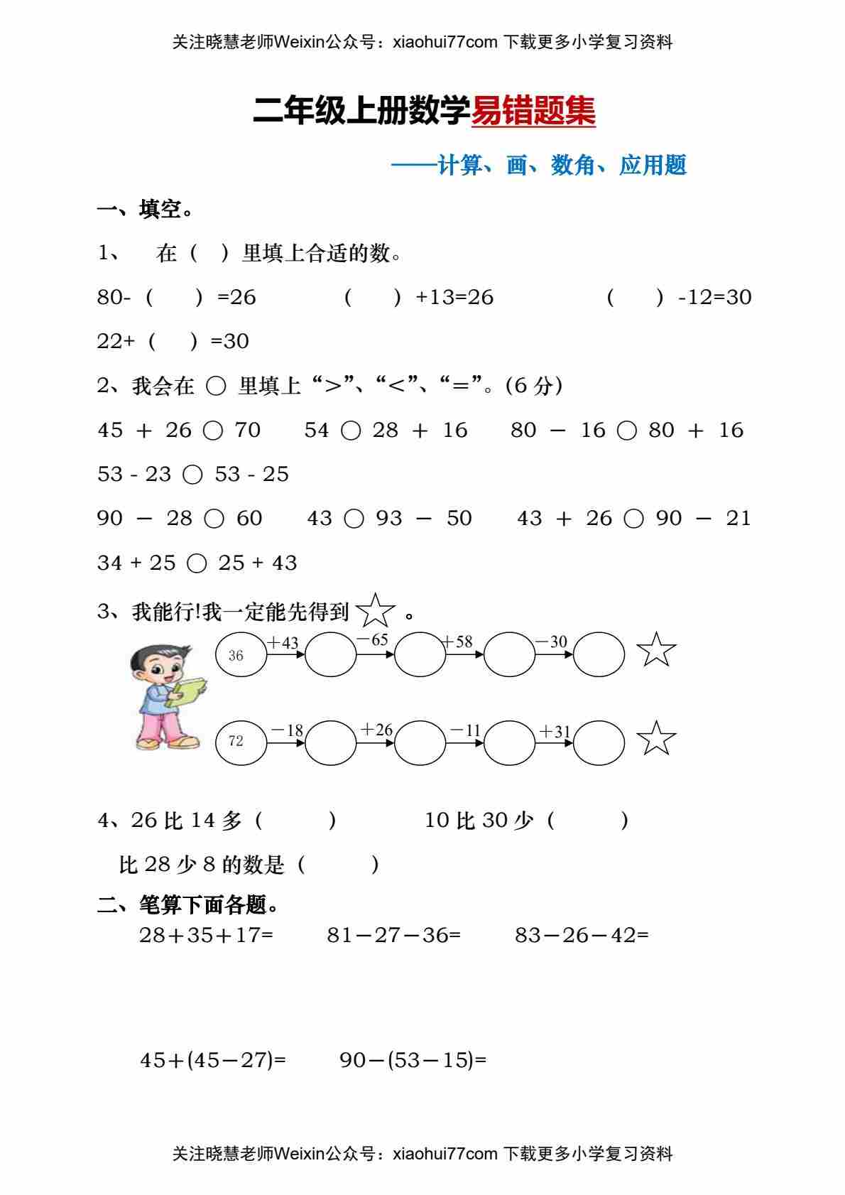 二(上)数学易错题集1(计算 画、数角 应用题)