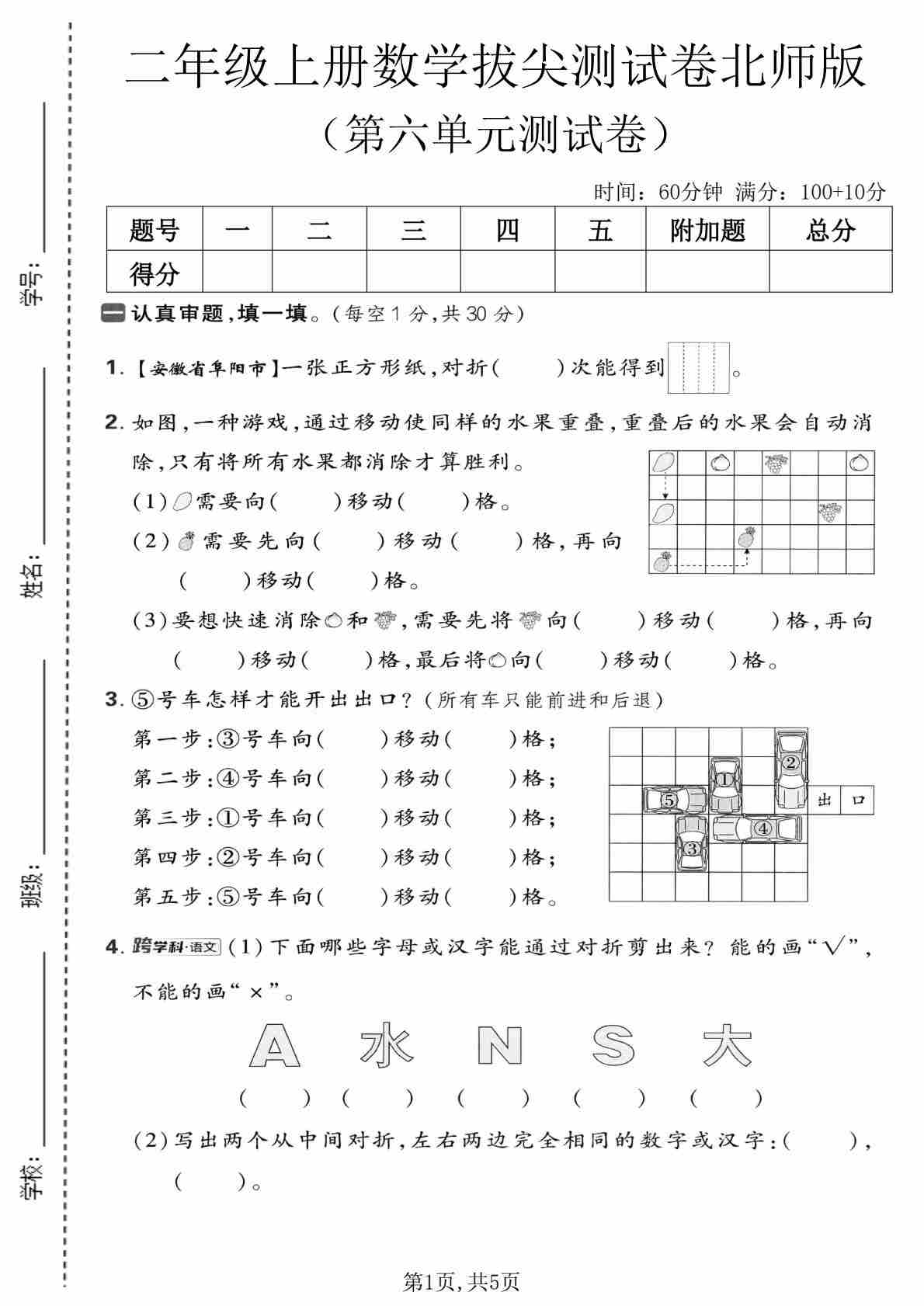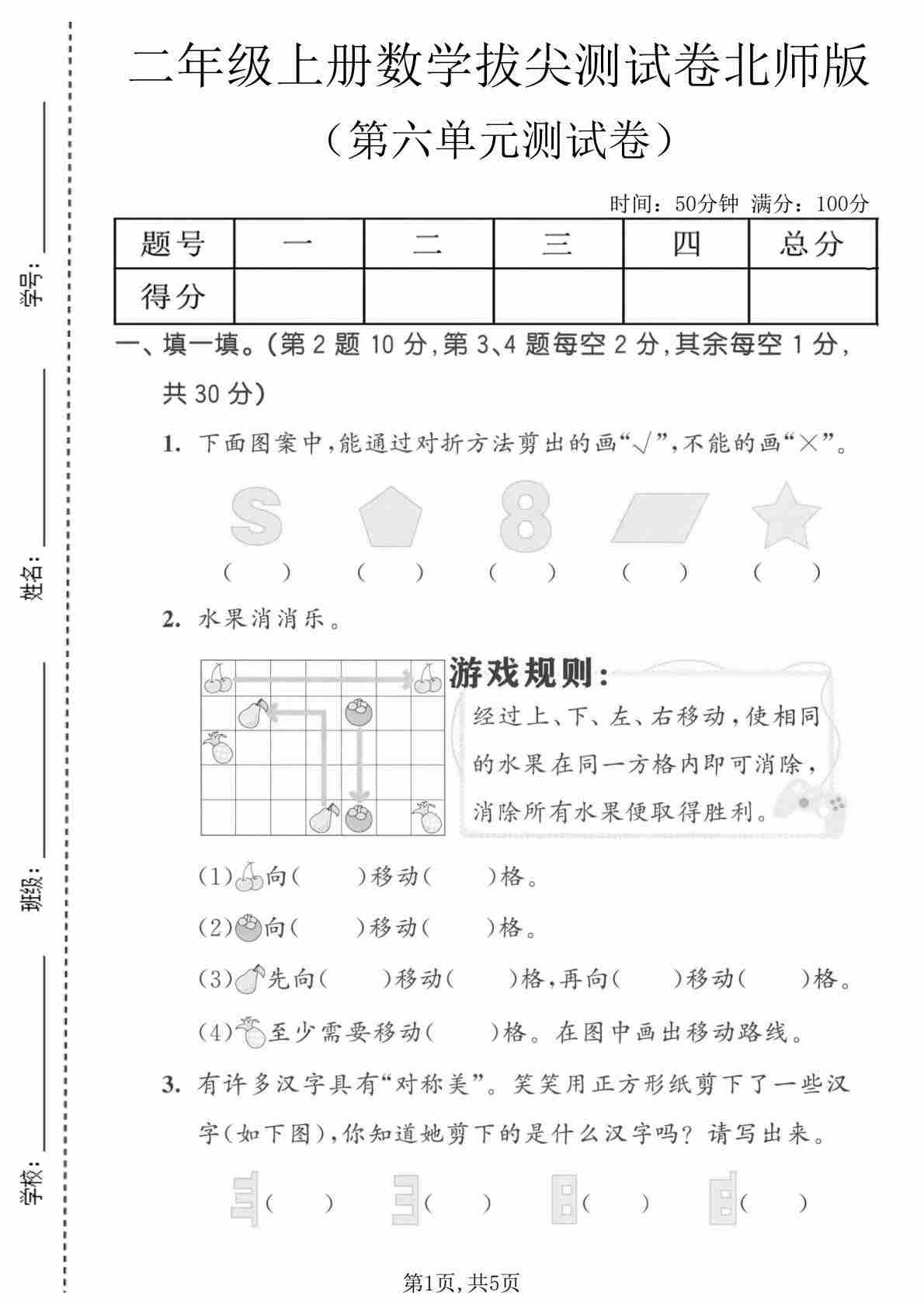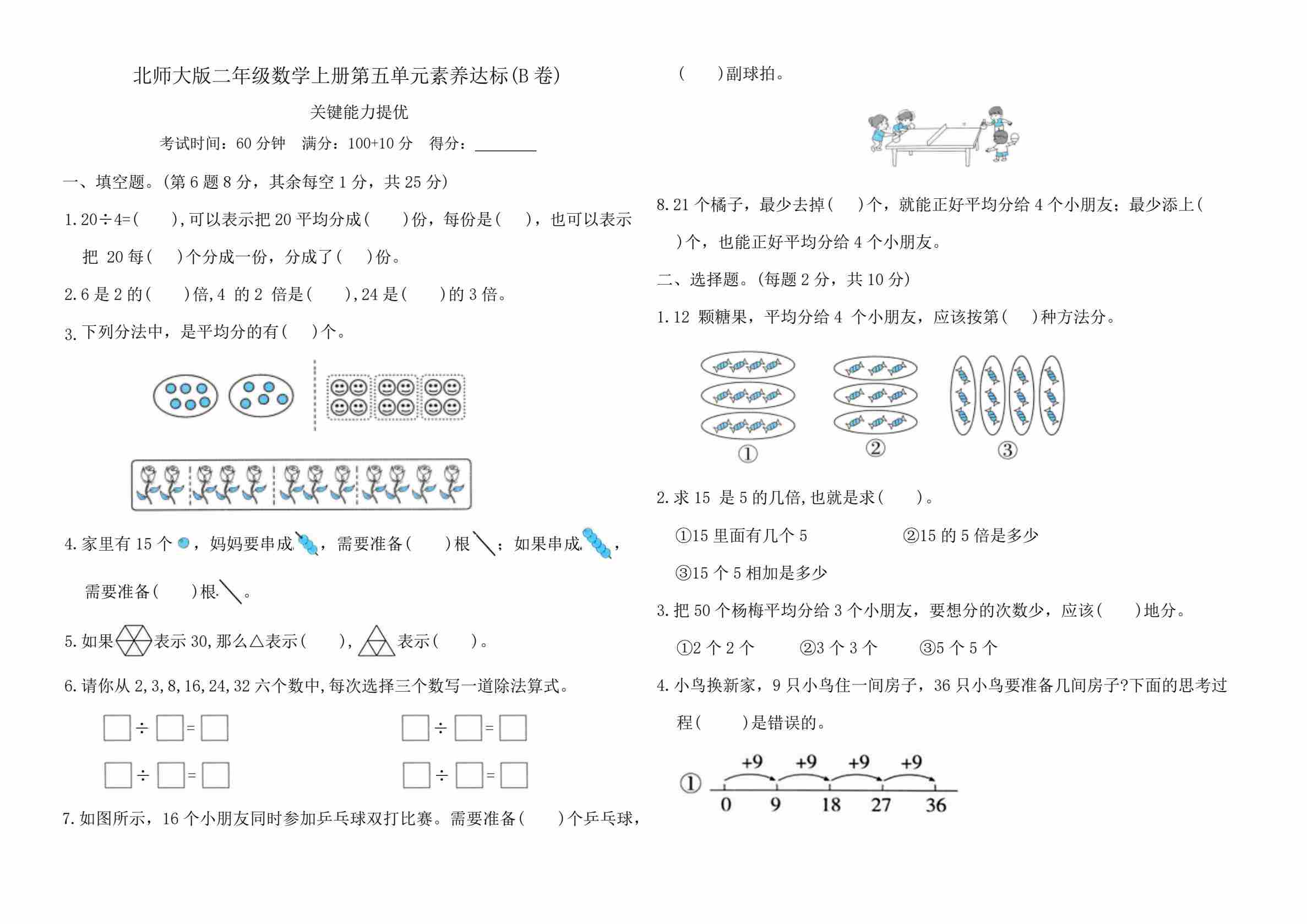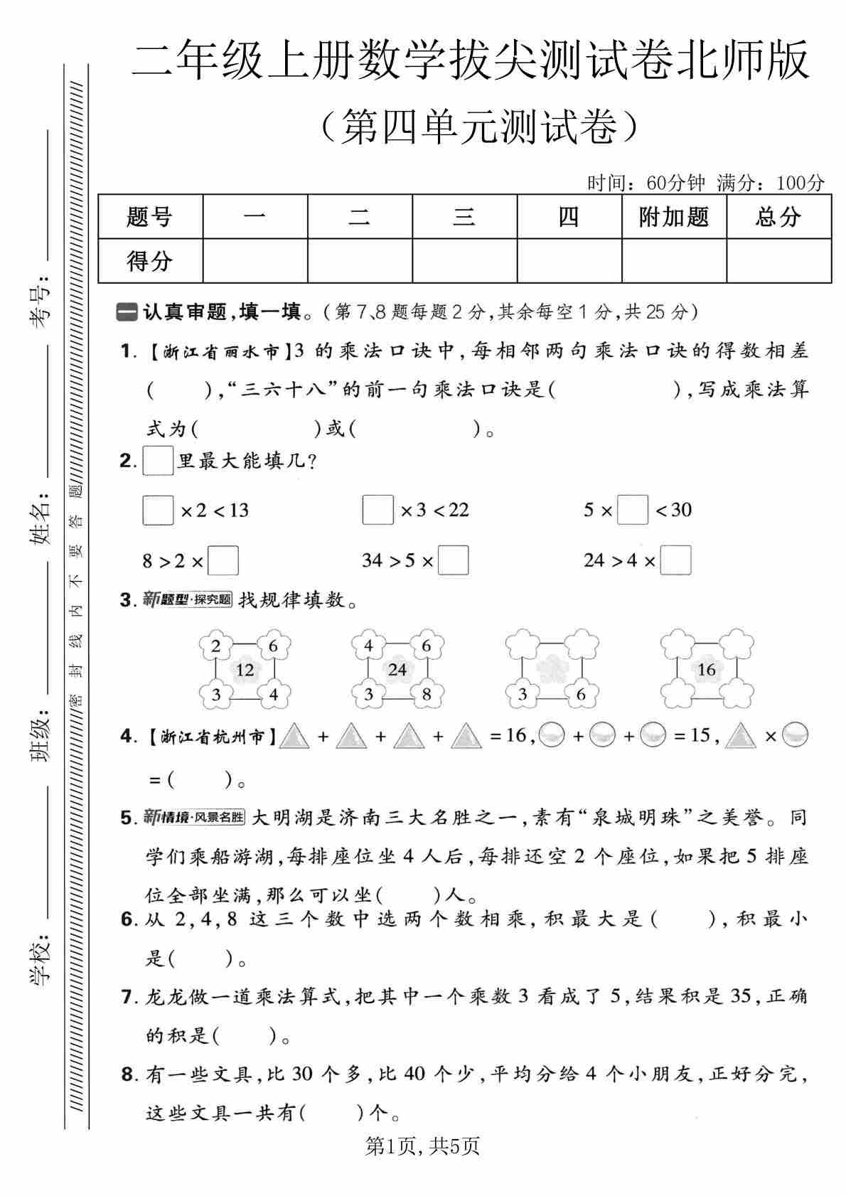 二年级(上)数学 第五单元拔尖测试卷《北师版》00