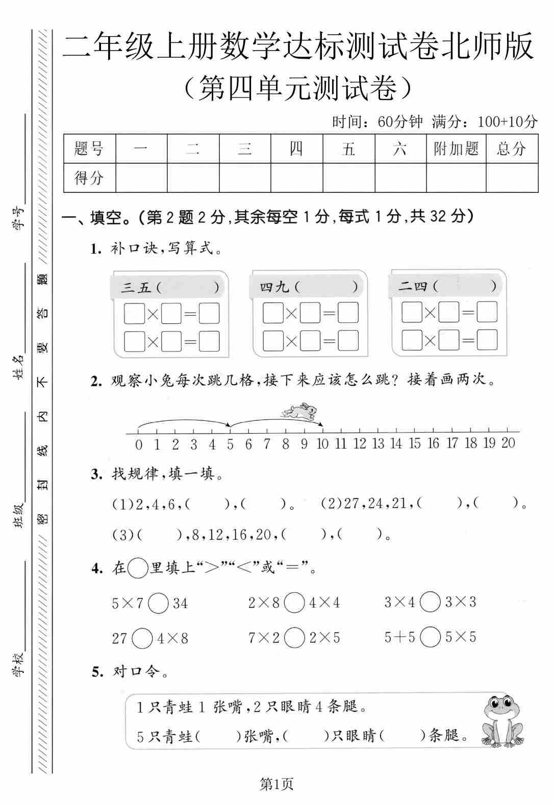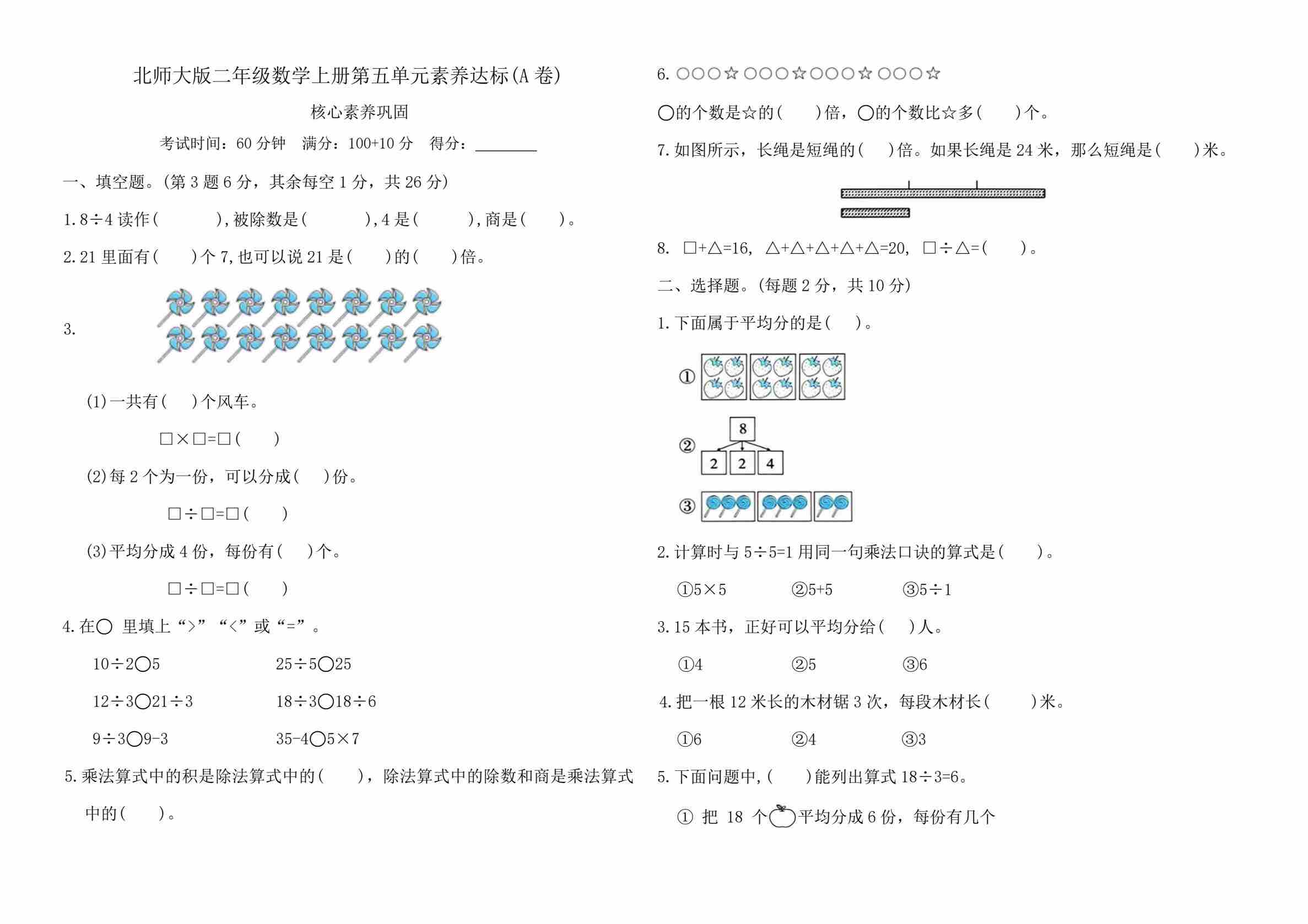 二年级(上)数学 第五单元达标测试卷《北师版》