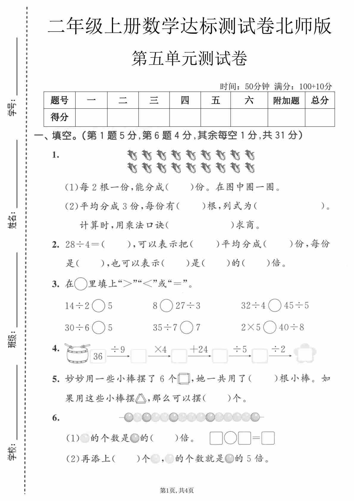 二年级(上)数学 第六单元拔尖测试卷4《北师版》