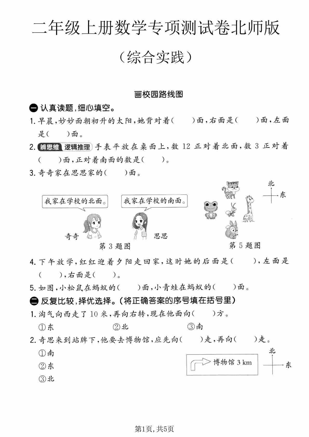 二年级(上)数学 综合实践专项测试卷《北师版》