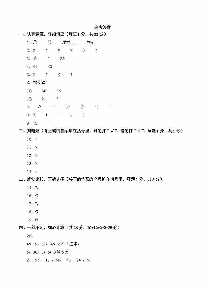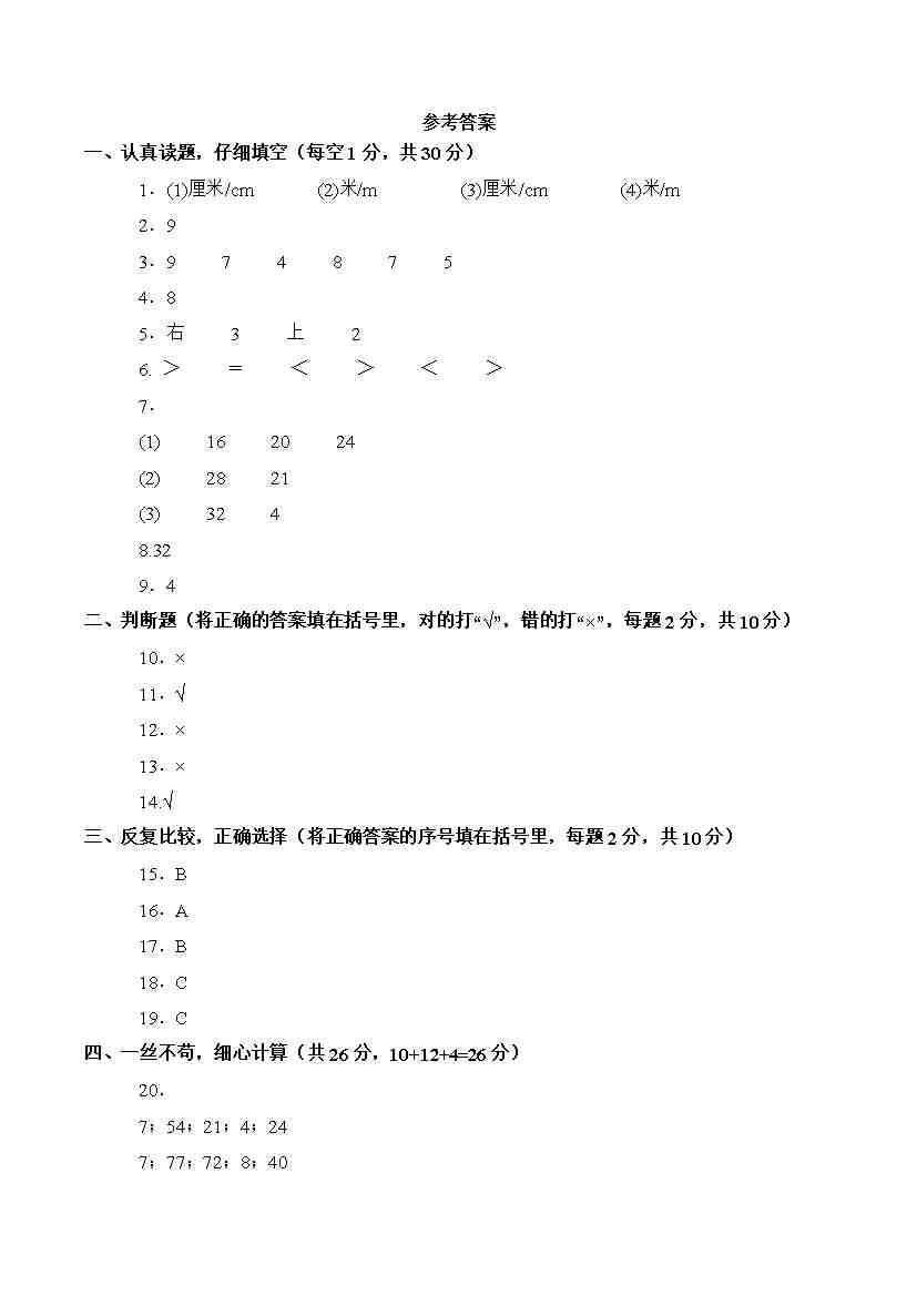 提高卷01-2025-2026学年二年级数学上学期期末素养测评(提升卷01)(北师大版)(参考答案)