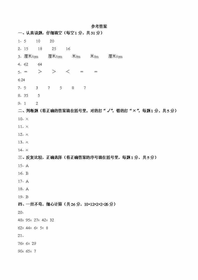25秋北师大版二年级数学上册期末常考易错提优卷(含答案)