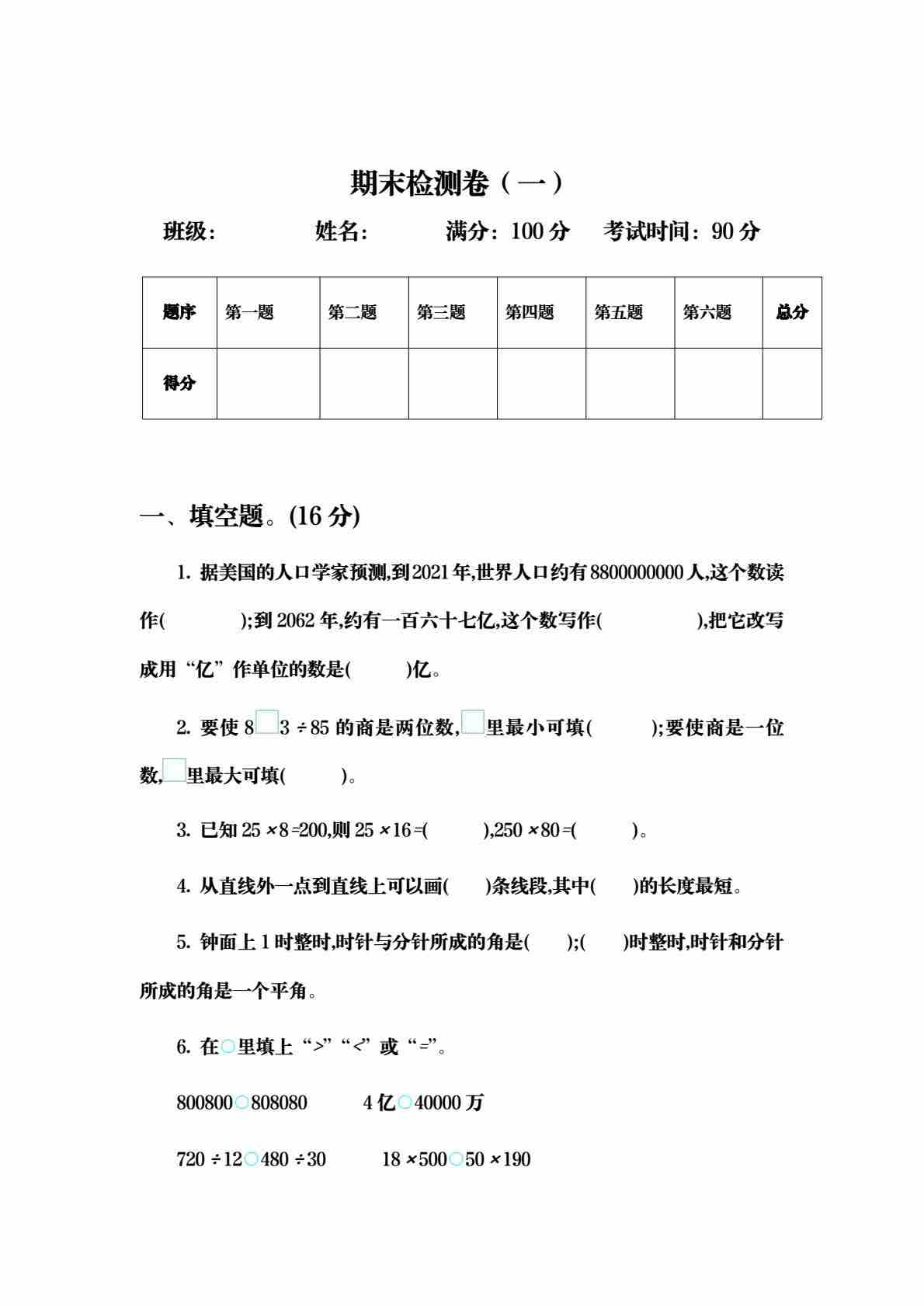 四年级(上)数学 期末检测卷(两套)《北师版》