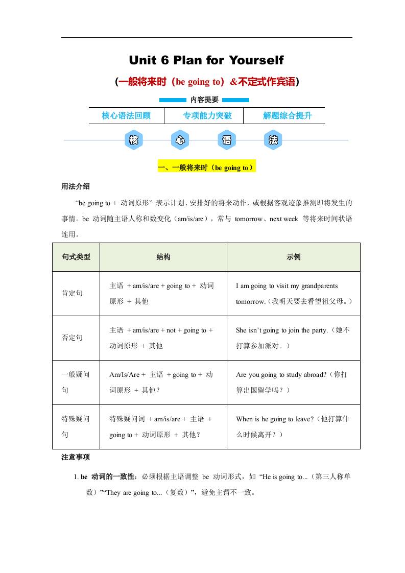 Unit 6 Plan for Yourself!一般将来时(be going to)&不定式作宾语(解析版)