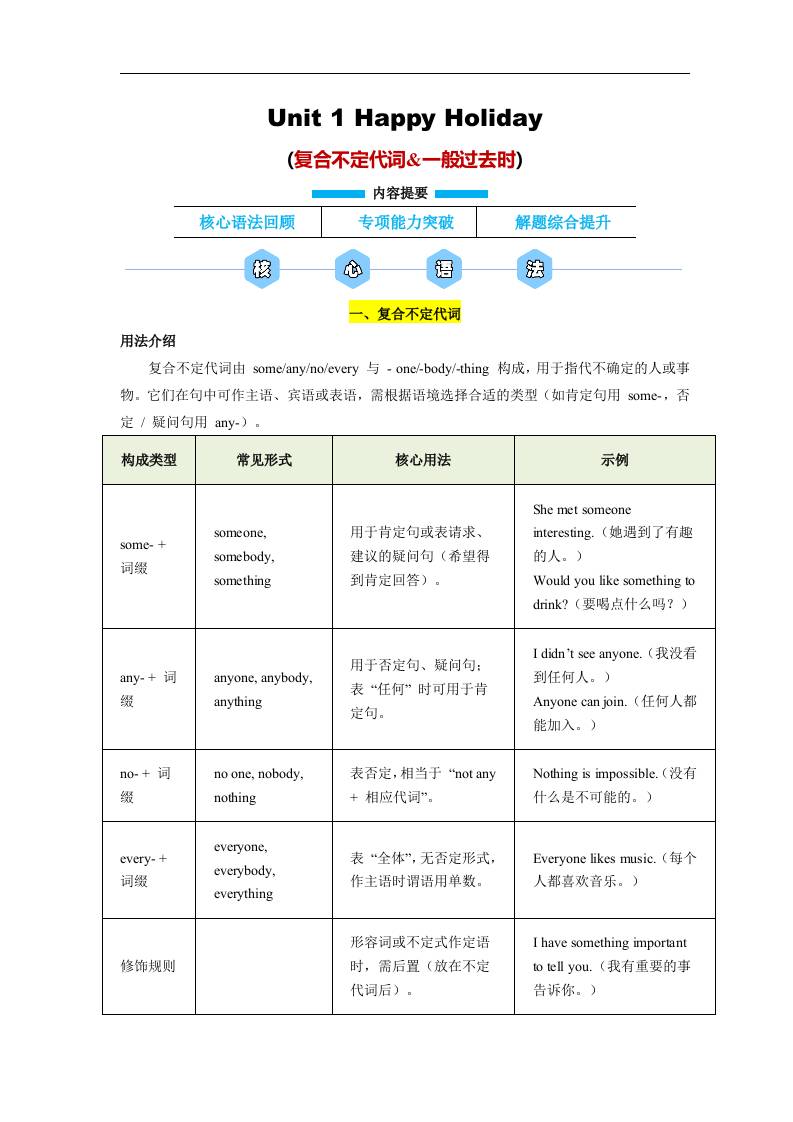Unit 1 Happy Holiday 复合不定代词&一般过去时(原卷版)