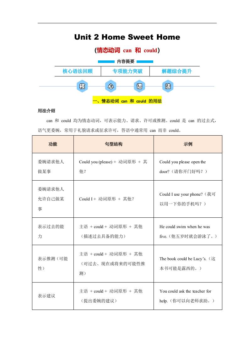 Unit 2 Home Sweet Home 情态动词can和could(单元核心语法精练)(原卷版)