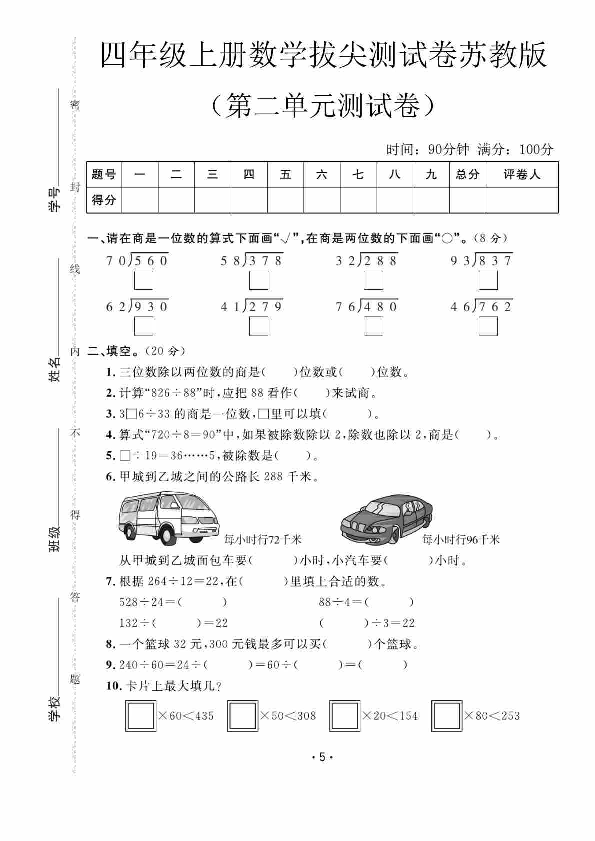 四年级(上)数学第五单元检测卷2《苏教版》