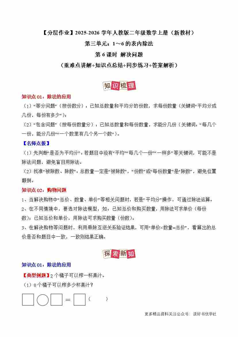 第三单元 第6课时 解决问题(分层作业)(学生版)