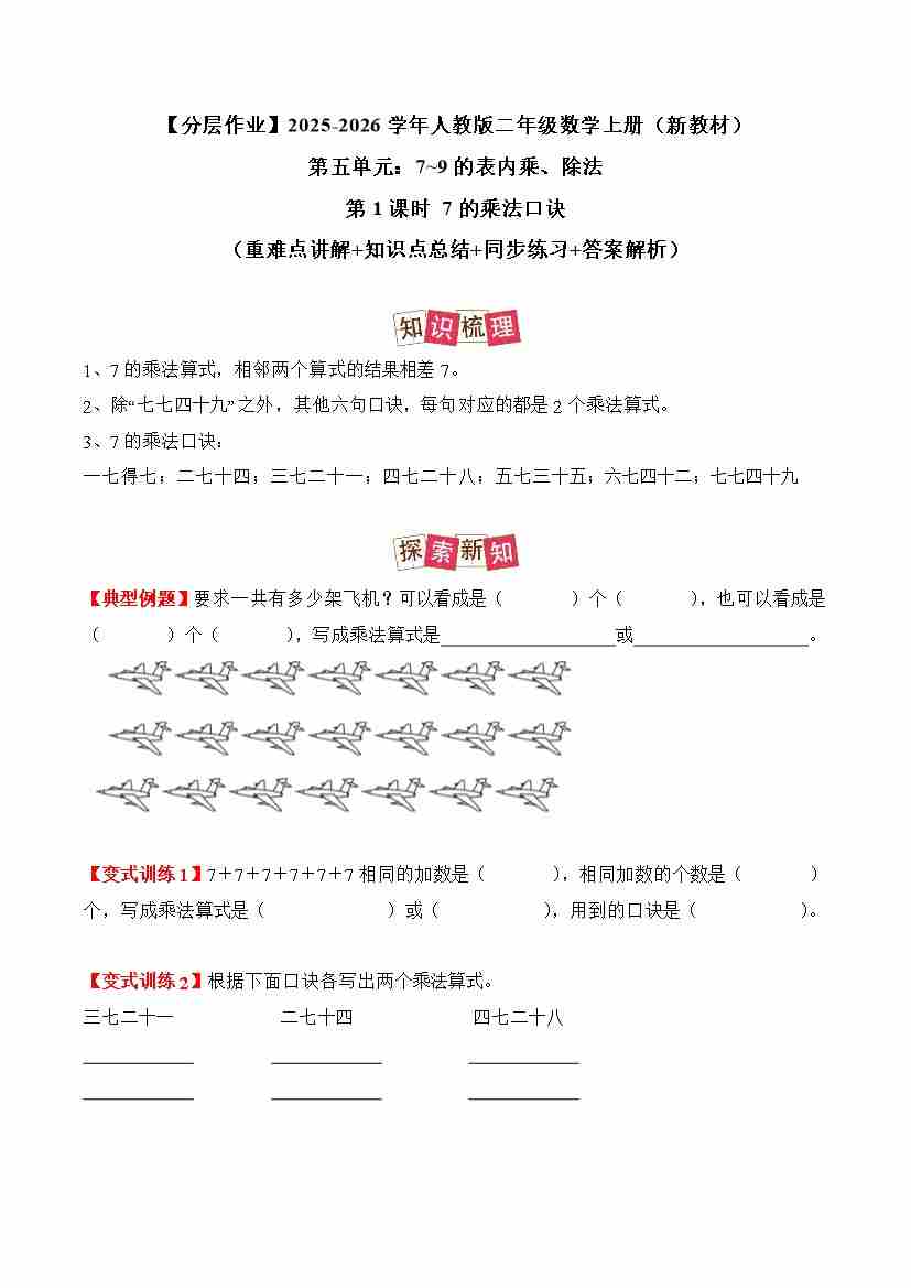 第五单元 第1课时 7的乘法口诀 (分层作业) (学生版)