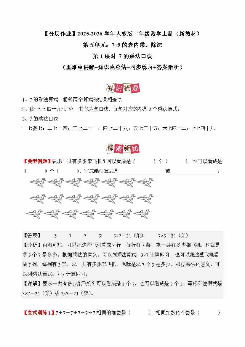 第五单元 第1课时 7的乘法口诀 (分层作业) (解析版)