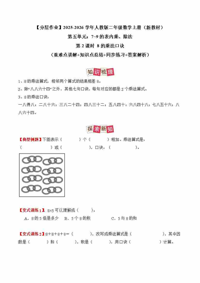 第五单元 第2课时 8的乘法口诀 (分层作业) (学生版)