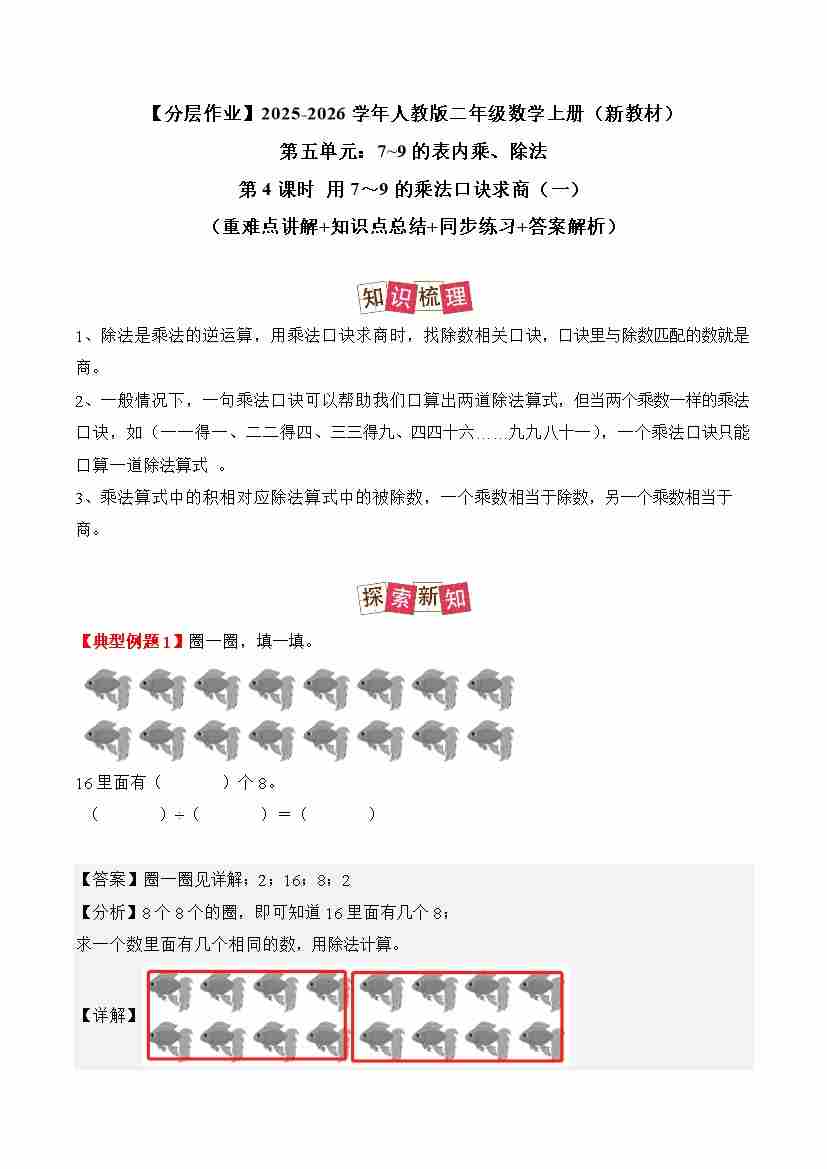 第五单元 第4课时 用7~9的乘法口诀求商(一)(分层作业) (解析版)