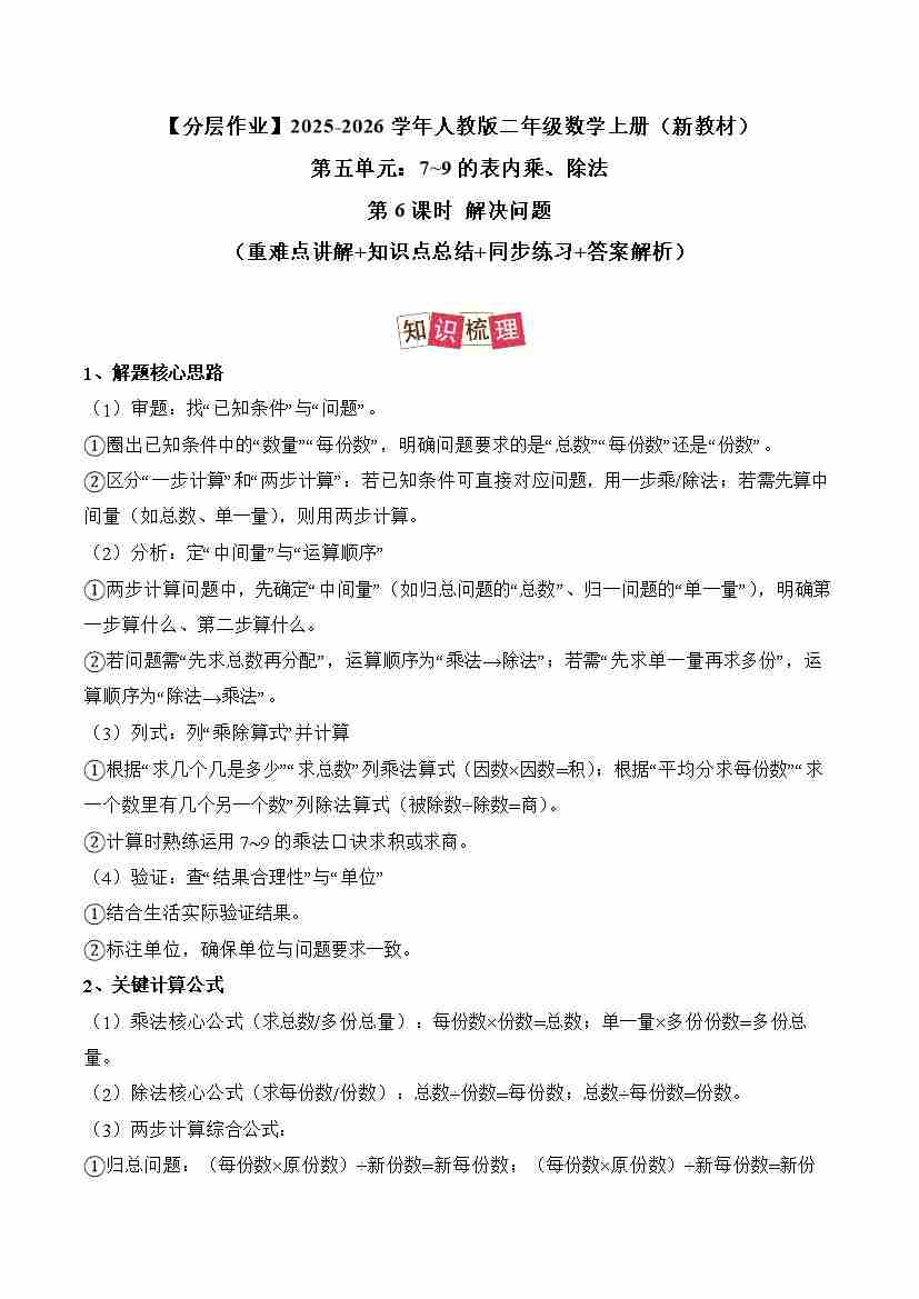 第五单元 第6课时 解决问题(分层作业) (解析版)