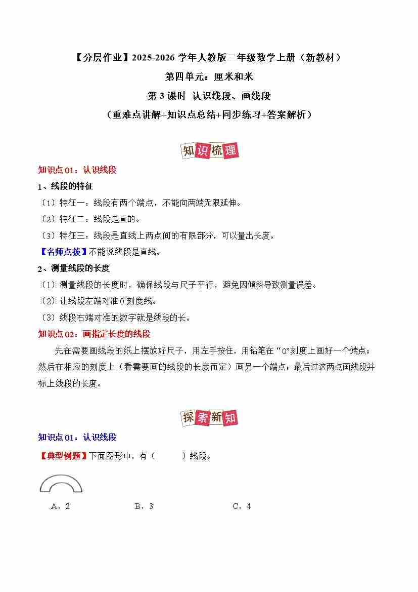 第四单元 第3课时 认识线段、画线段(分层作业)(学生版)