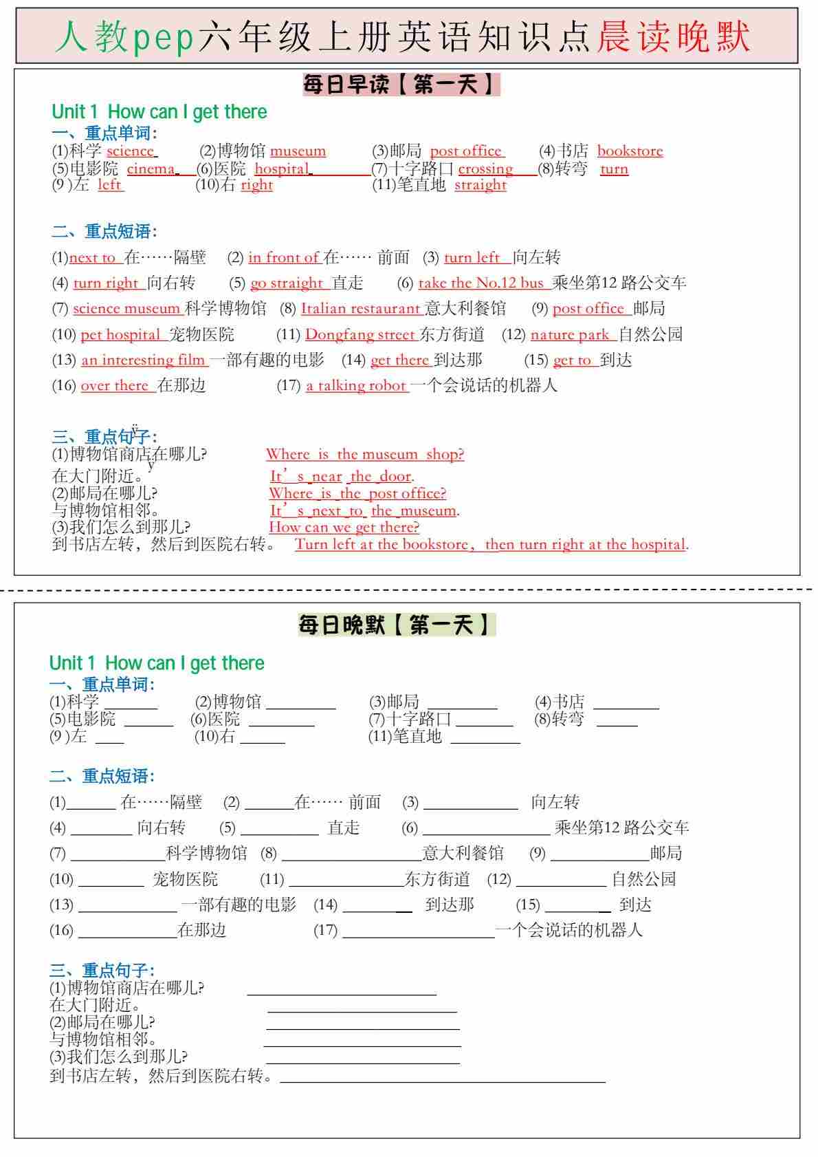 六(上)英语人教PEP版【知识点晨读晚默】