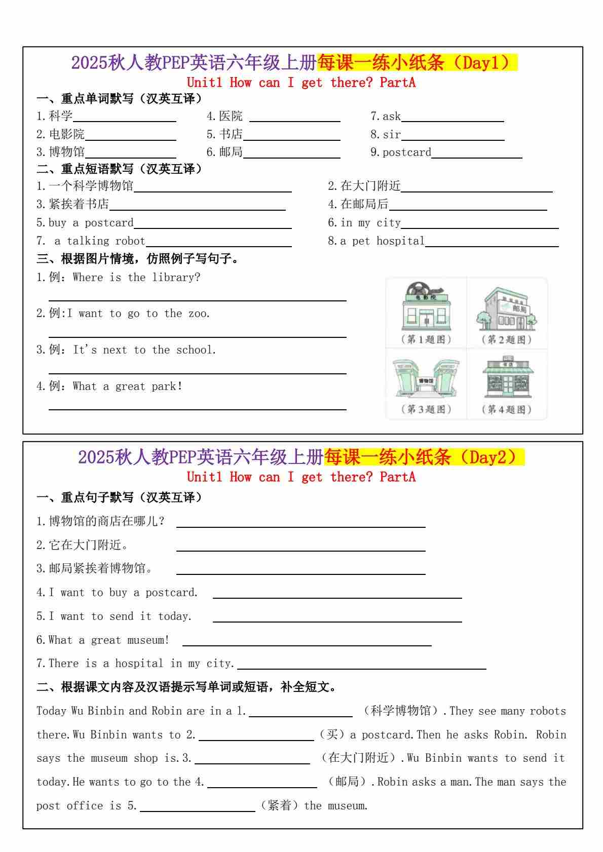 六(上)英语人教PEP:每课一练小纸条(24天)1