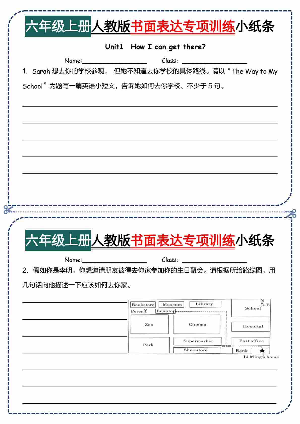 六上人教版书面表达每日一练小纸条【空白】