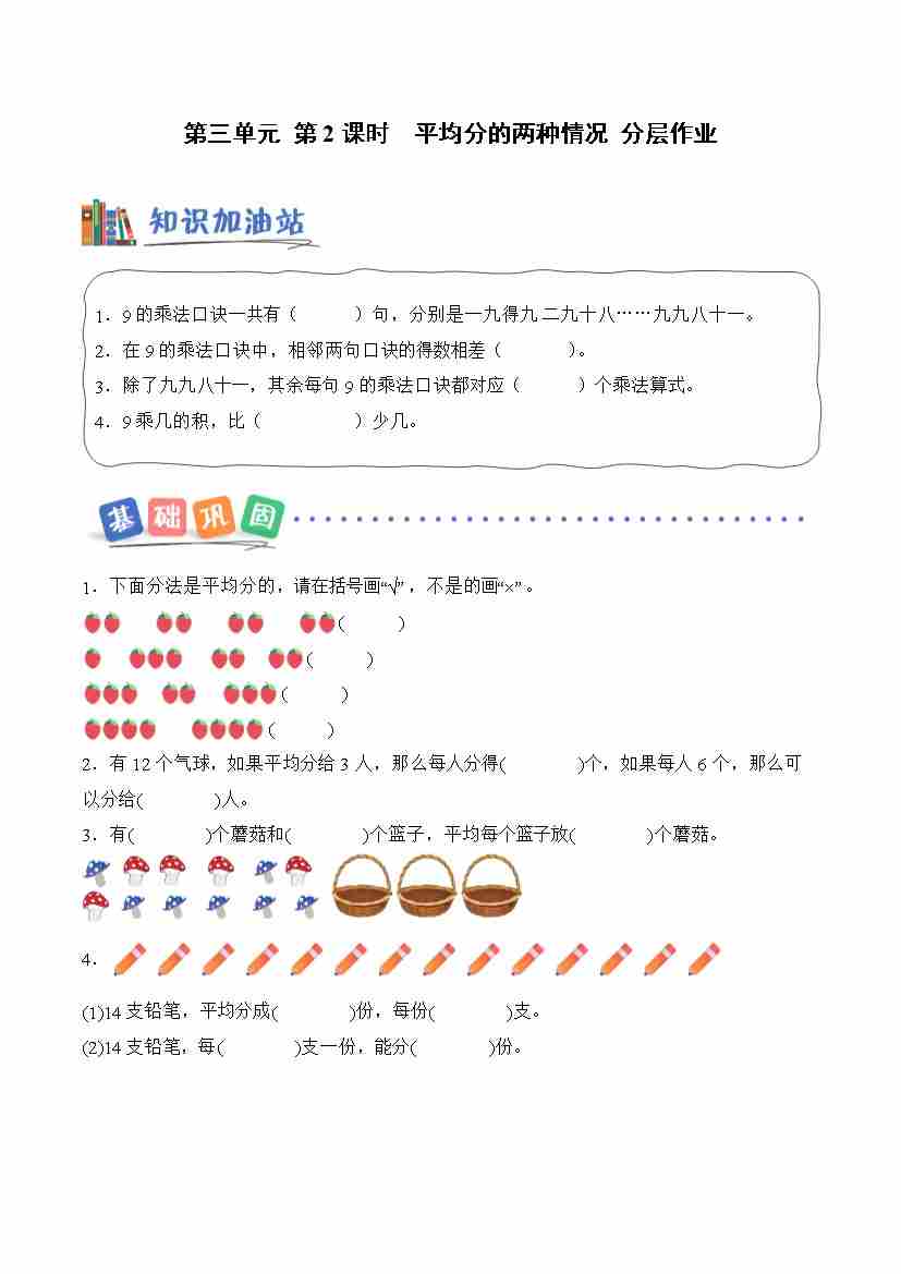 第三单元 第2课时 平均分的两种情况(分层作业)数学青岛五四版二年级上册(新教材)