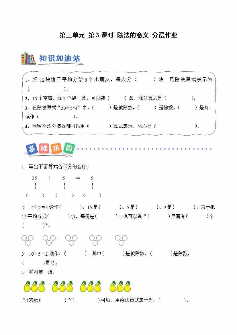 第三单元 第3课时 除法的意义(分层作业)数学青岛五四版二年级上册(新教材)