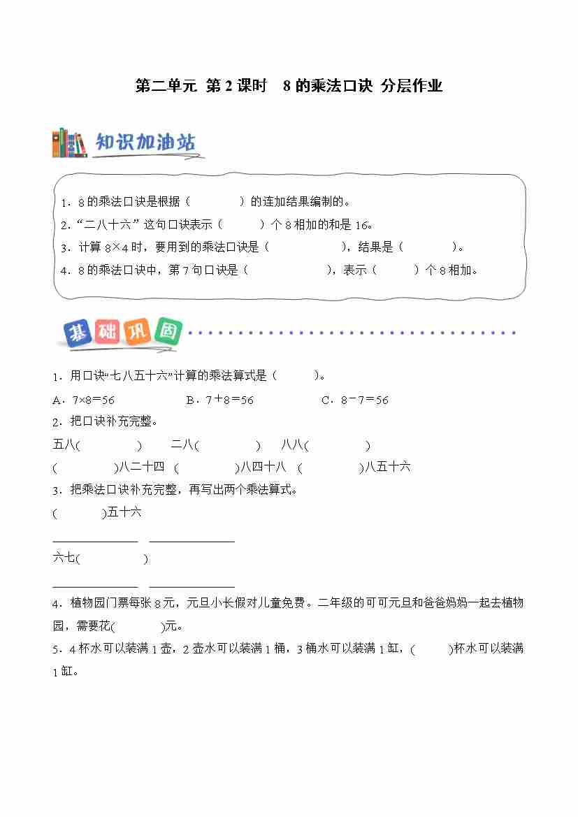 第二单元 第2课时 8的乘法口诀(分层作业)数学青岛五四版二年级上册(新教材)