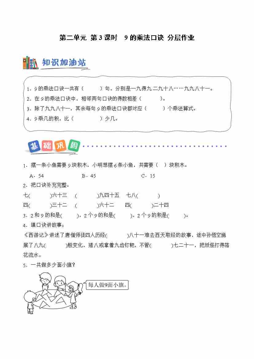 第二单元 第3课时 9的乘法口诀(分层作业)数学青岛版(五四制)二年级上册(新教材)