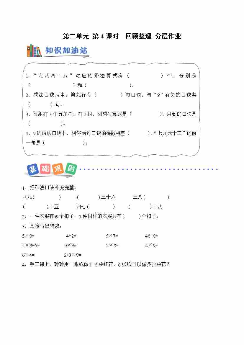 第一单元 第03课时 1-4的乘法口诀(分层作业)数学青岛五四版二年级上册(新教材)