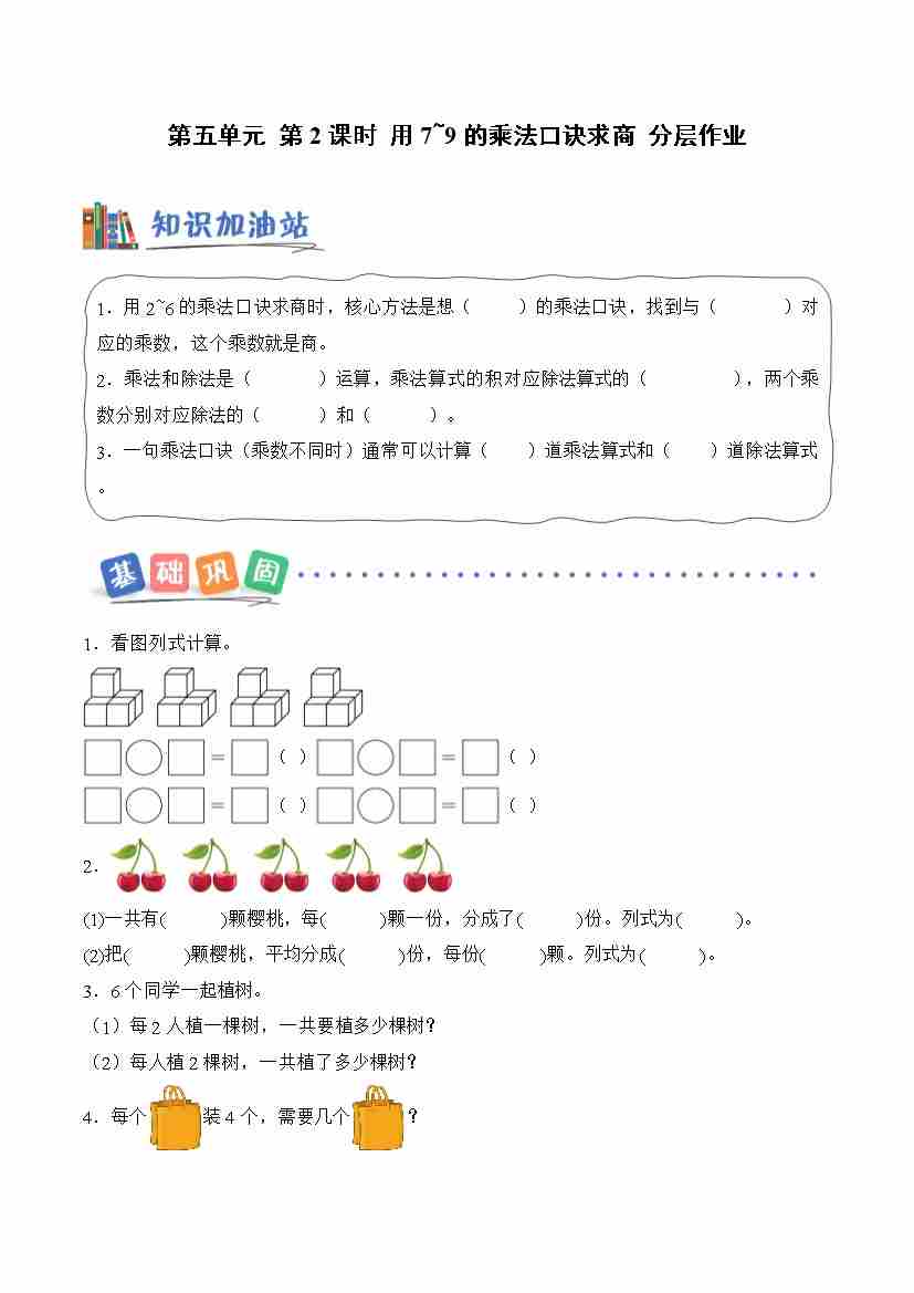 第五单元 第1课时 用2~6的乘法口诀求商(分层作业)数学青岛五四版二年级上册(新教材)