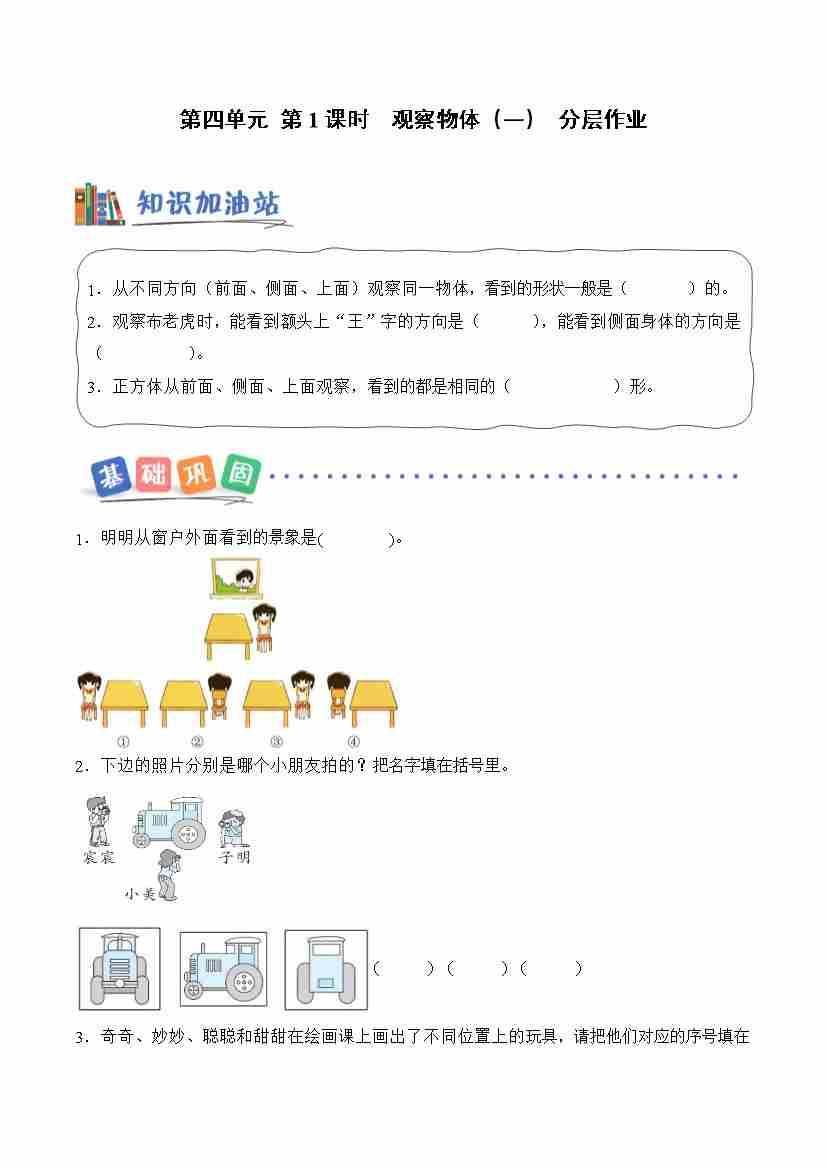 第四单元 第1课时 观察物体(一)(分层作业)数学青岛五四版二年级上册(新教材)